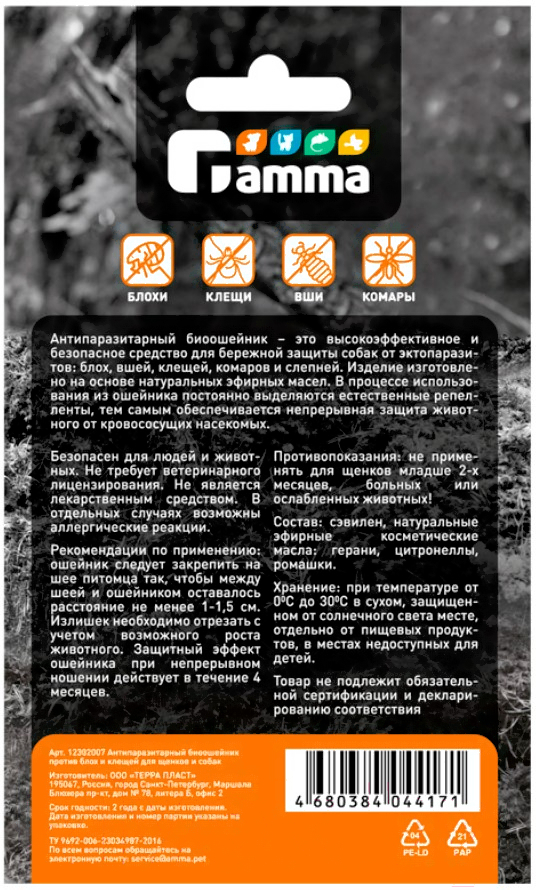 - Продолжительность действия ошейника/капель/таблетки 4 мес