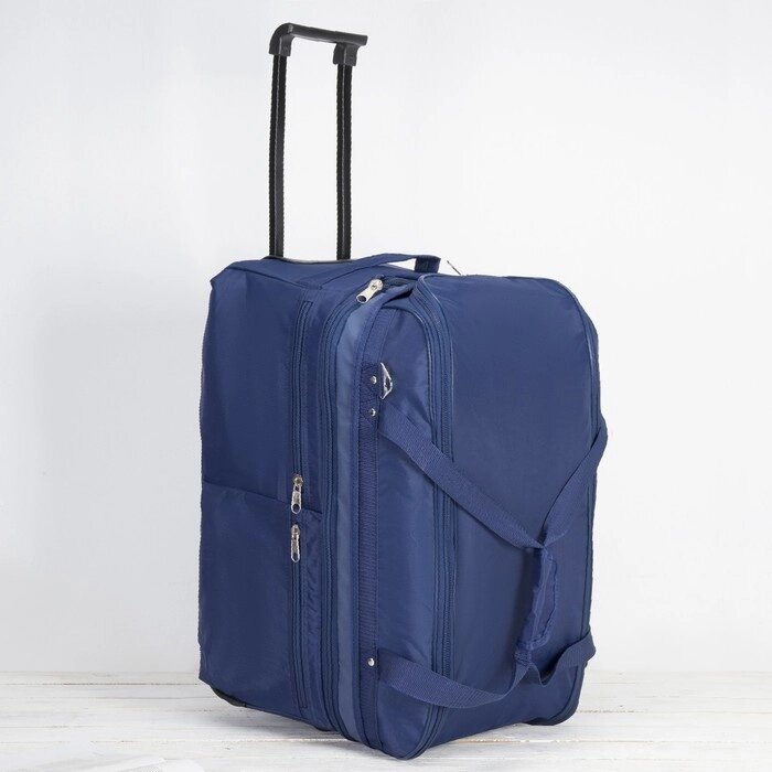Сумка дорожная на колёсах, отдел на молнии, с увеличением, 2 наружных кармана, длинный ремень, цвет синий