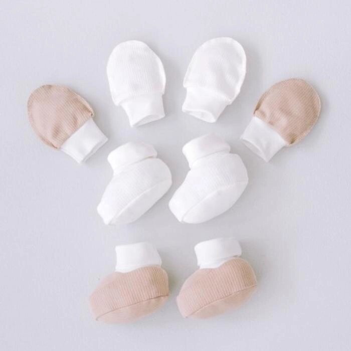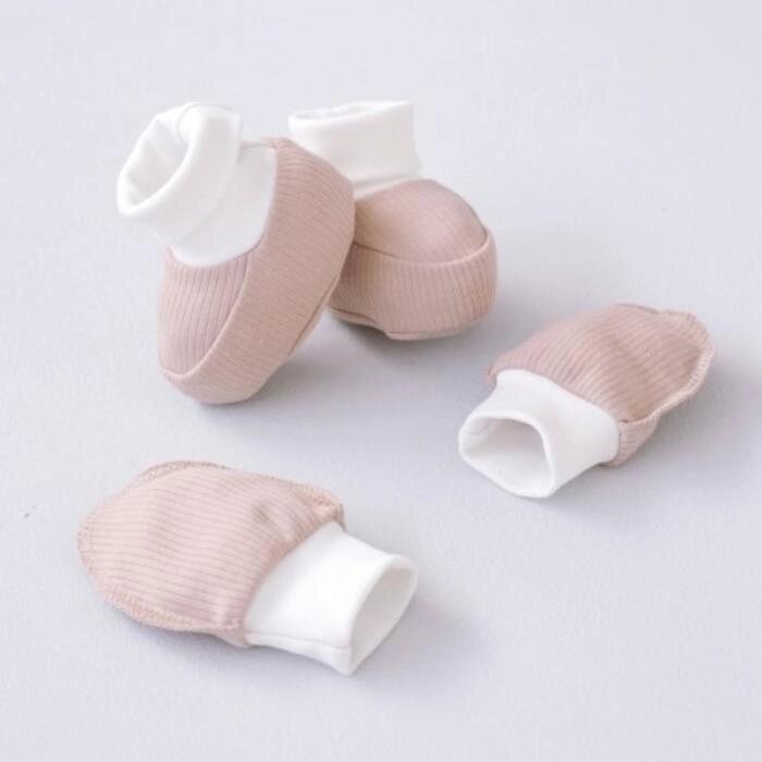 Комплект: варежки анти-царапки и пинетки, цвет капучино
