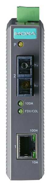 Промышленный конвертер Ethernet 10/100BaseTX в 100BaseFX (многомодовое оптоволокно, разъем ST, 1300 нм), в пластиковом корпусе, -10...+60С
