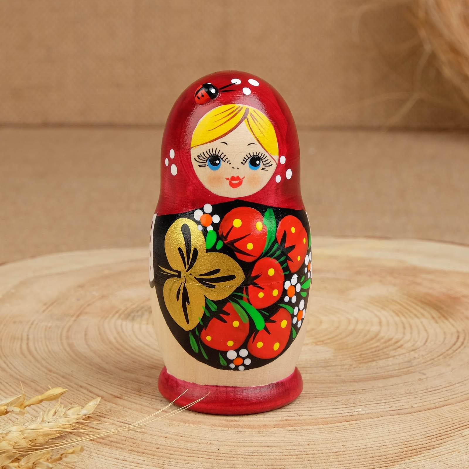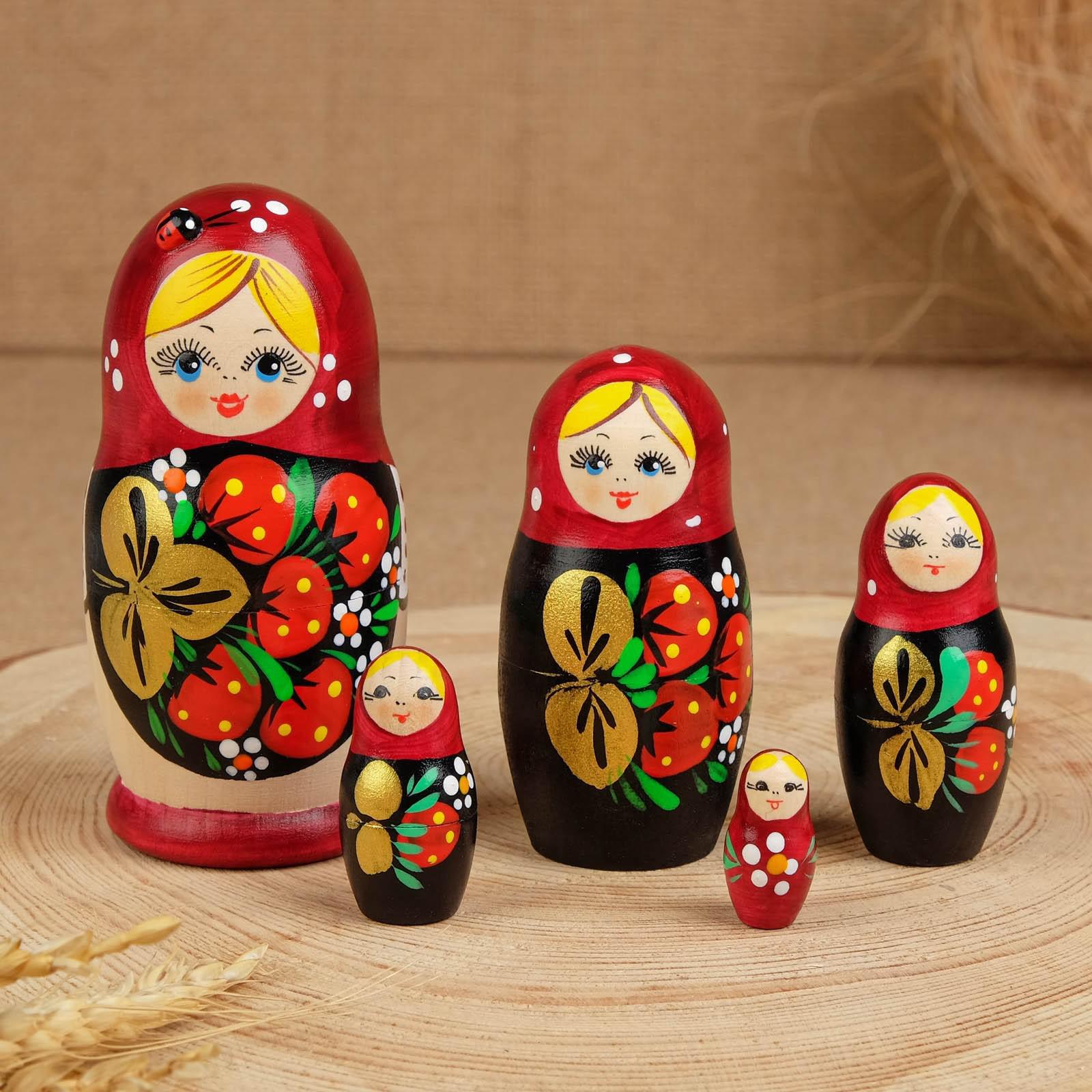 Матрёшка «Аврора», бордовый платок с ягодами, 5 кукольная, 10,5 см