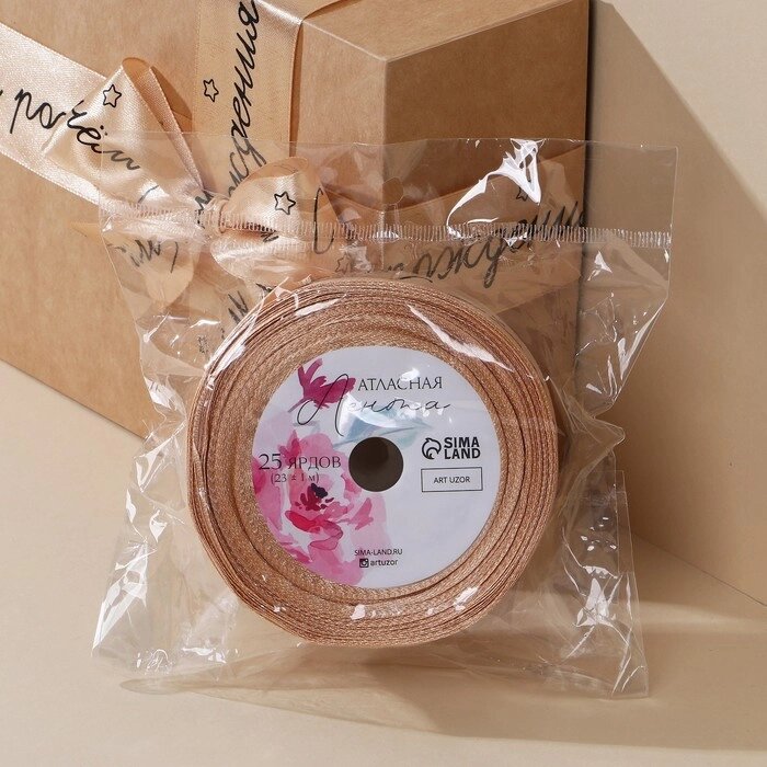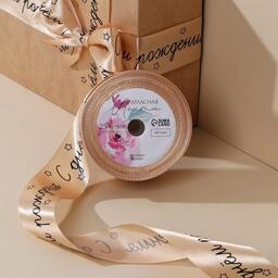 Лента атласная "С днем рождения", розово-персиковая , 4 см 25 ярдов (22,5 м)