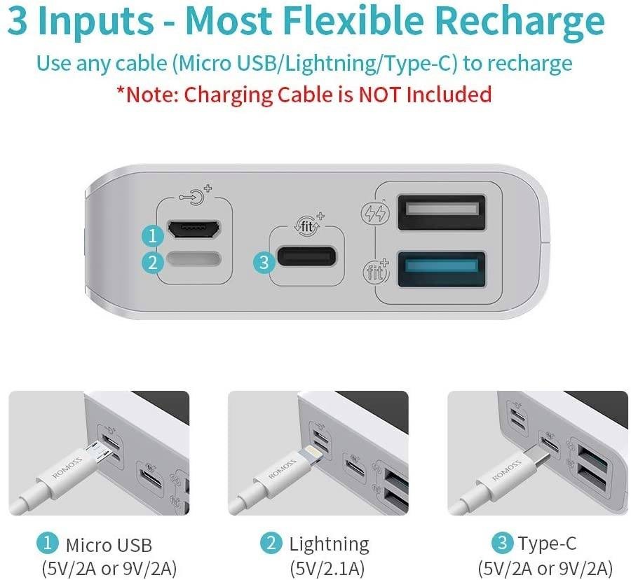 • Входы зарядки powerbank'a microUSBUSB CApple Lightning