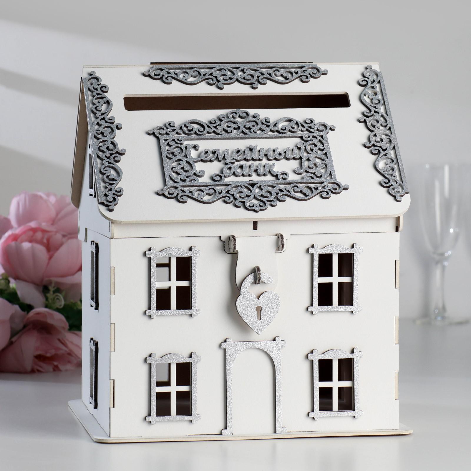 Семейный банк "Дом №2", 24,5х24х28 см, белый-серебро