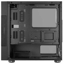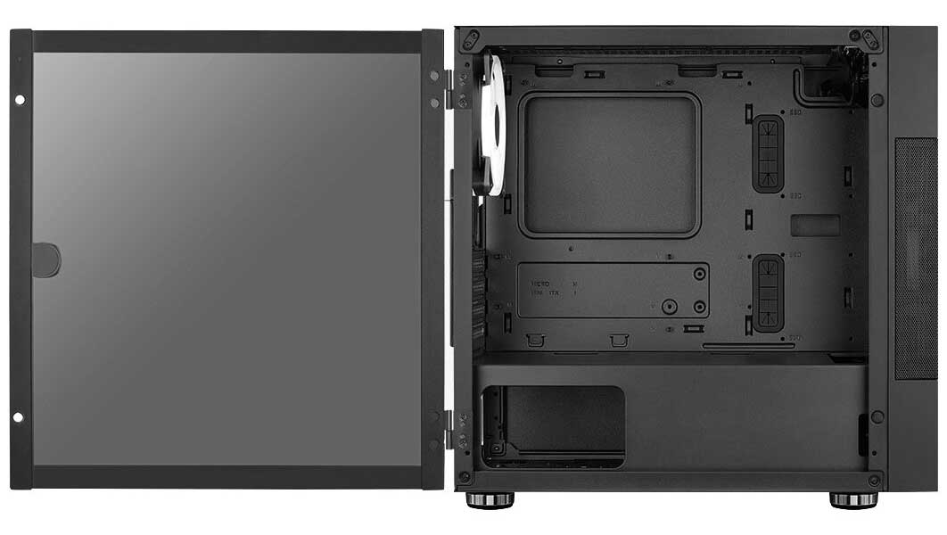 Стильный темный дизайн корпуса mATX AEROCOOL Atomic-G-BK-v1 удачно дополняется симпатичной прозрачной боковой панелью. В нем установлено два вентилятора размерами 200 и 120 мм, которые не позволяют перегреваться комплектующим. Для удобного подключения внешних устройств предусмотрено 2 разъема USB 3.0, которые расположены с фронтальной стороны. Внутри корпуса mATX AEROCOOL Atomic-G-BK-v1 имеется 4 отсека 2, 5 и 2 отсека 3, 5, дающих возможность разместить несколько жестких дисков. Если владелец планирует работать с трехмерной графикой или играть в игры, то ему не обойтись без мощной видеокарты. В корпусе есть место для видеокарты длиной до 347 мм. В нижней части корпуса, где расположено место для установки блока питания, температура ниже, что способствует его эффективной работе.