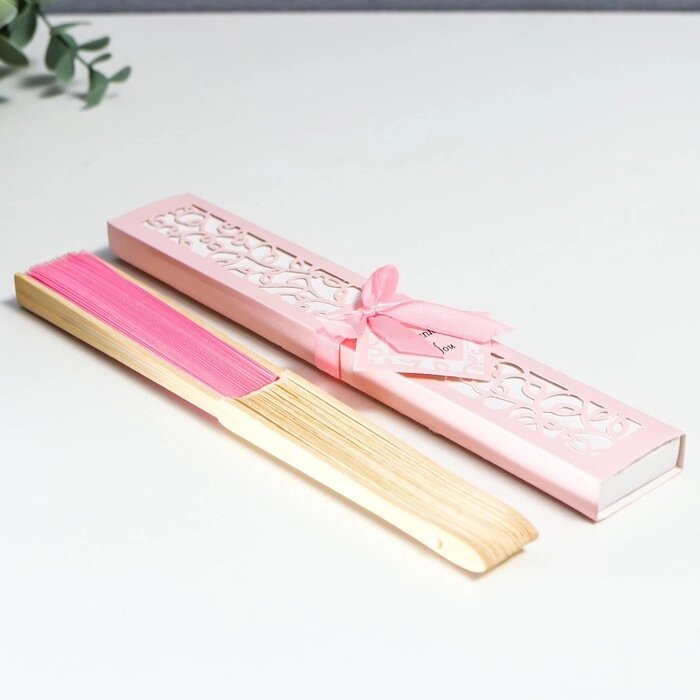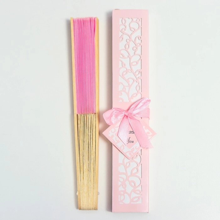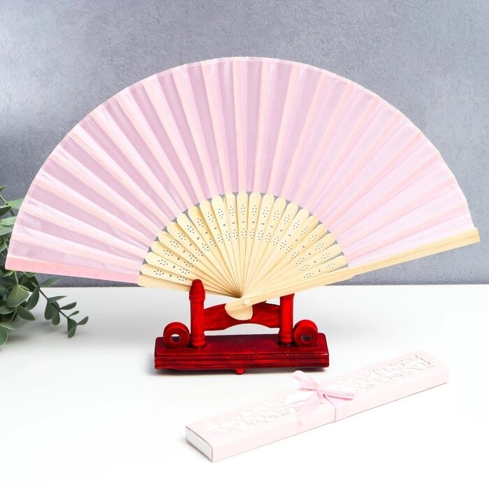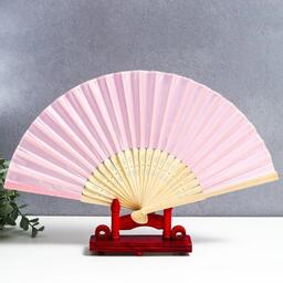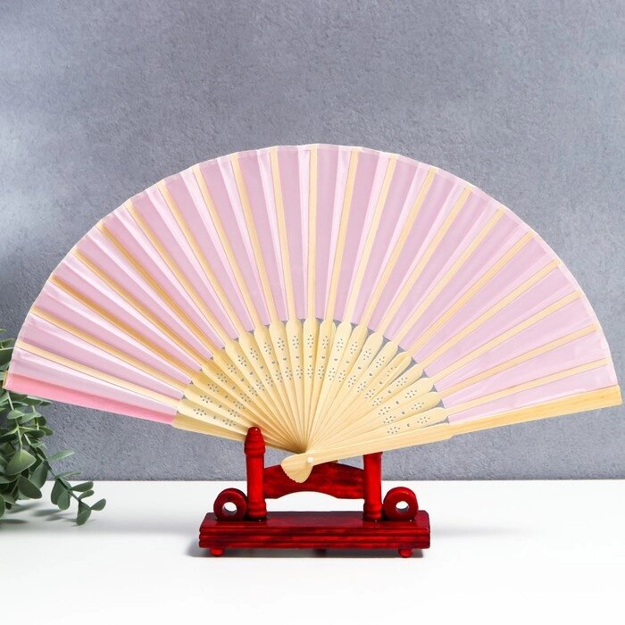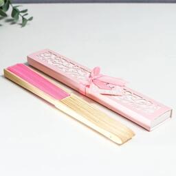 Веер бамбук, текстиль h=21 см "Моноцвет" в коробке, розовый