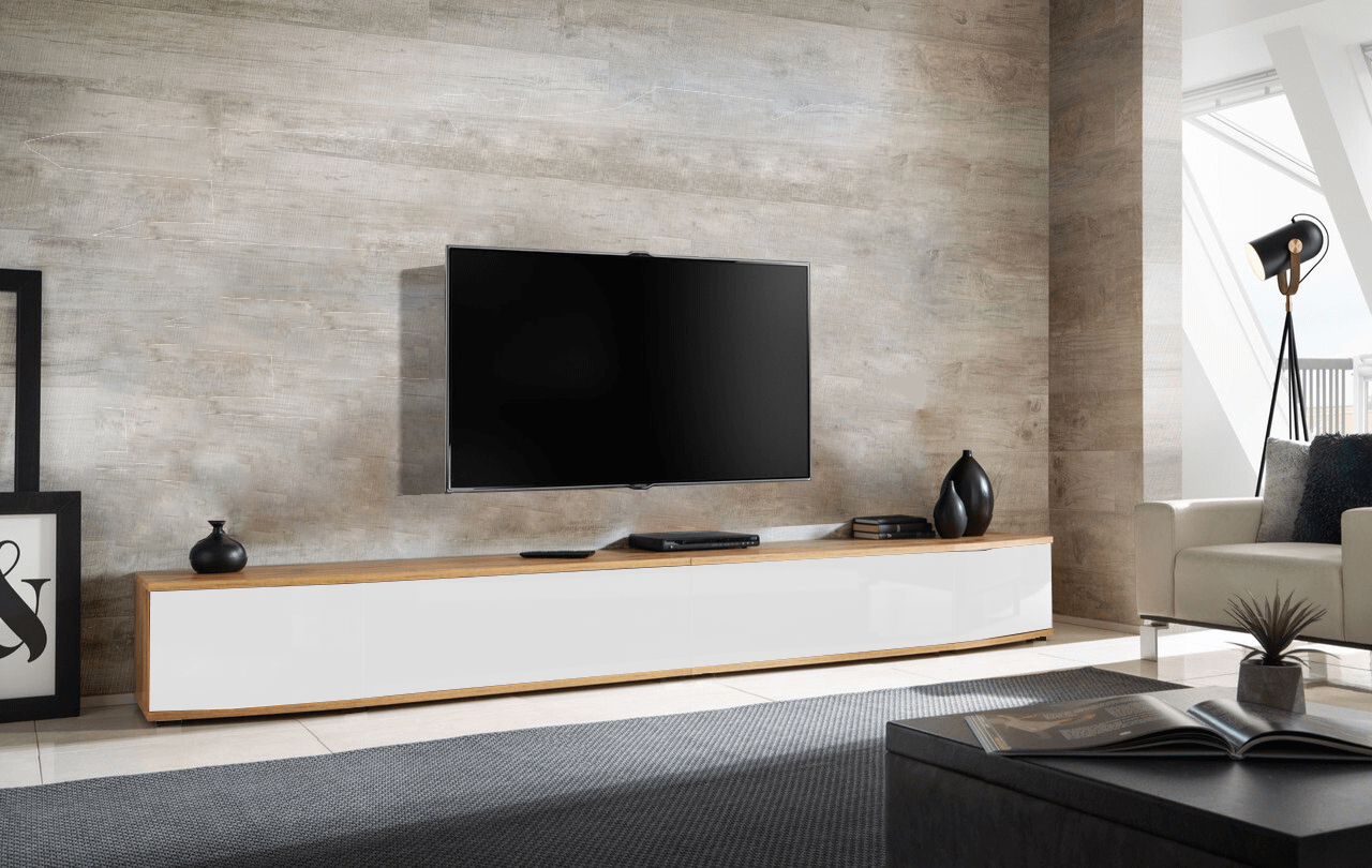 Тумба под ТВ Манхэттен дуб вотан/белый глянец
