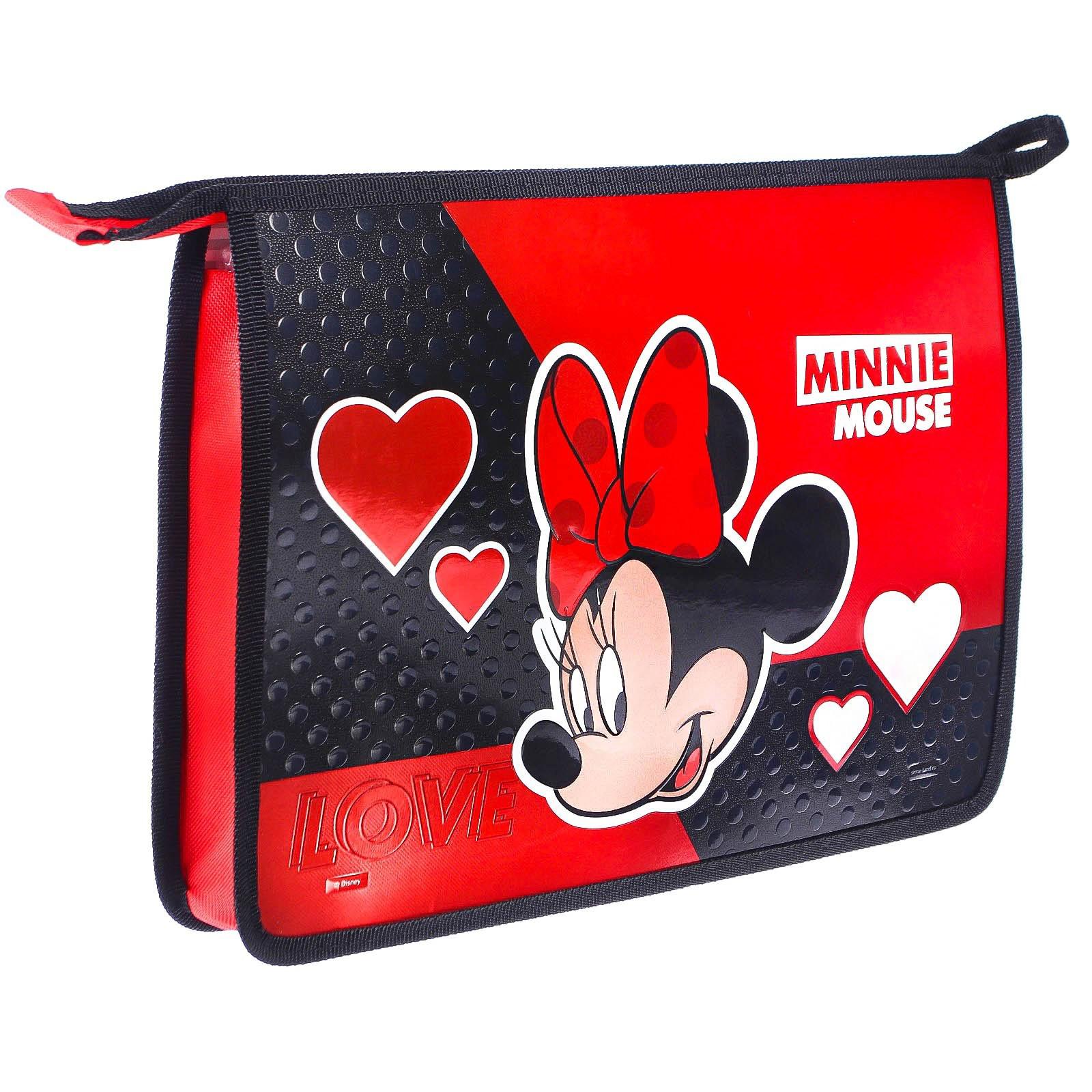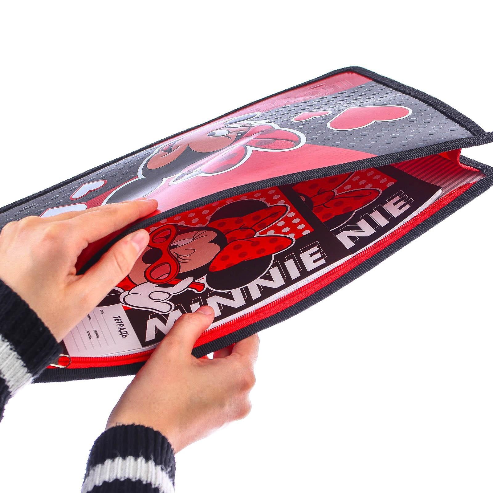 Папка для тетрадей А4, 230 х 325 х 50 мм, молния свкрху, "Минни Маус", объёмный 3D-рисунок с эффектом металлика