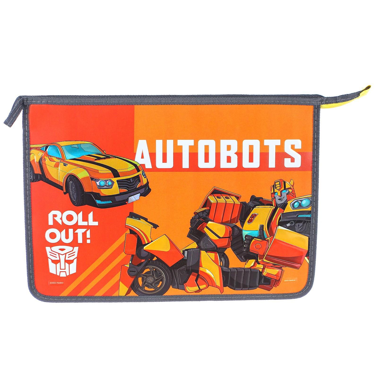 Папка для тетрадей А4, 230 х 325 х 50 мм, молния свкрху, "Трансформеры", объёмный 3D-рисунок с эффектом металлика