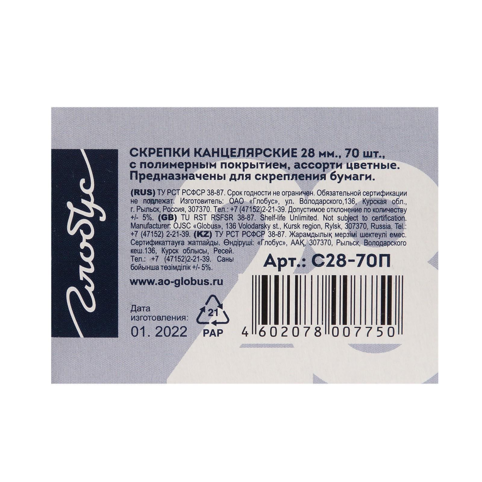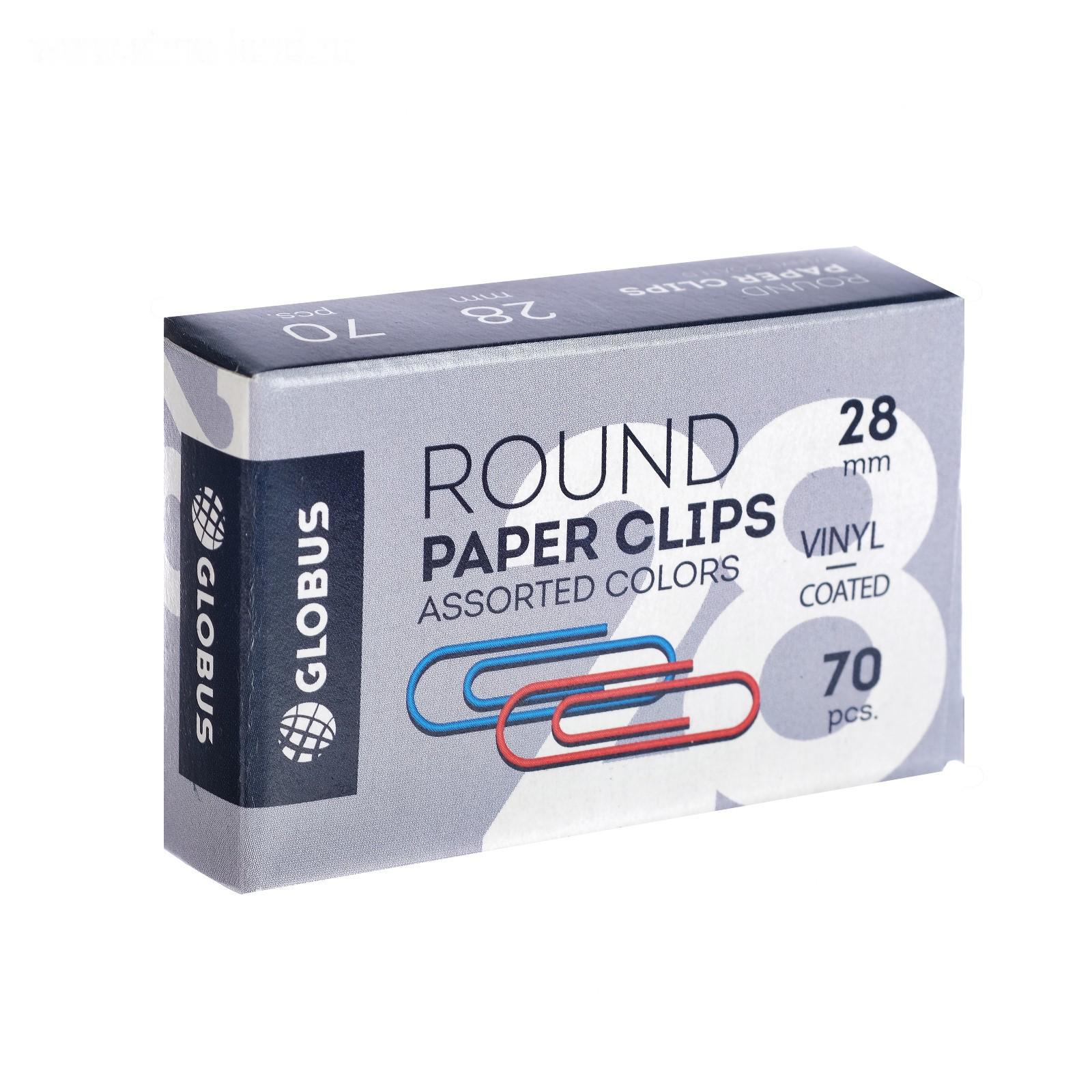 Скрепки канцелярские GLOBUS, 70 шт., 28 мм, цветные