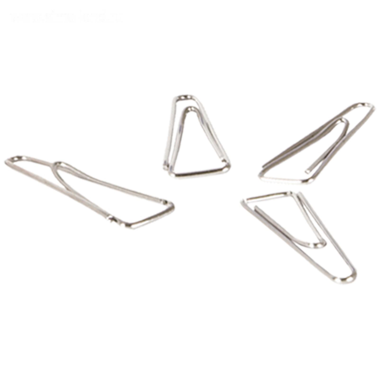Скрепки никелированные треугольные 25 мм, 100 штук, с отогнутым носиком, картонная упаковка