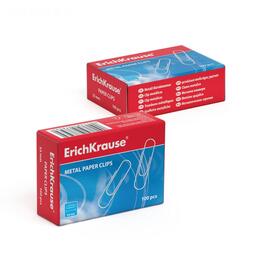 Скрепки канцелярские 33мм, 100шт, оцинкованные, ErichKrause, картонная упаковка