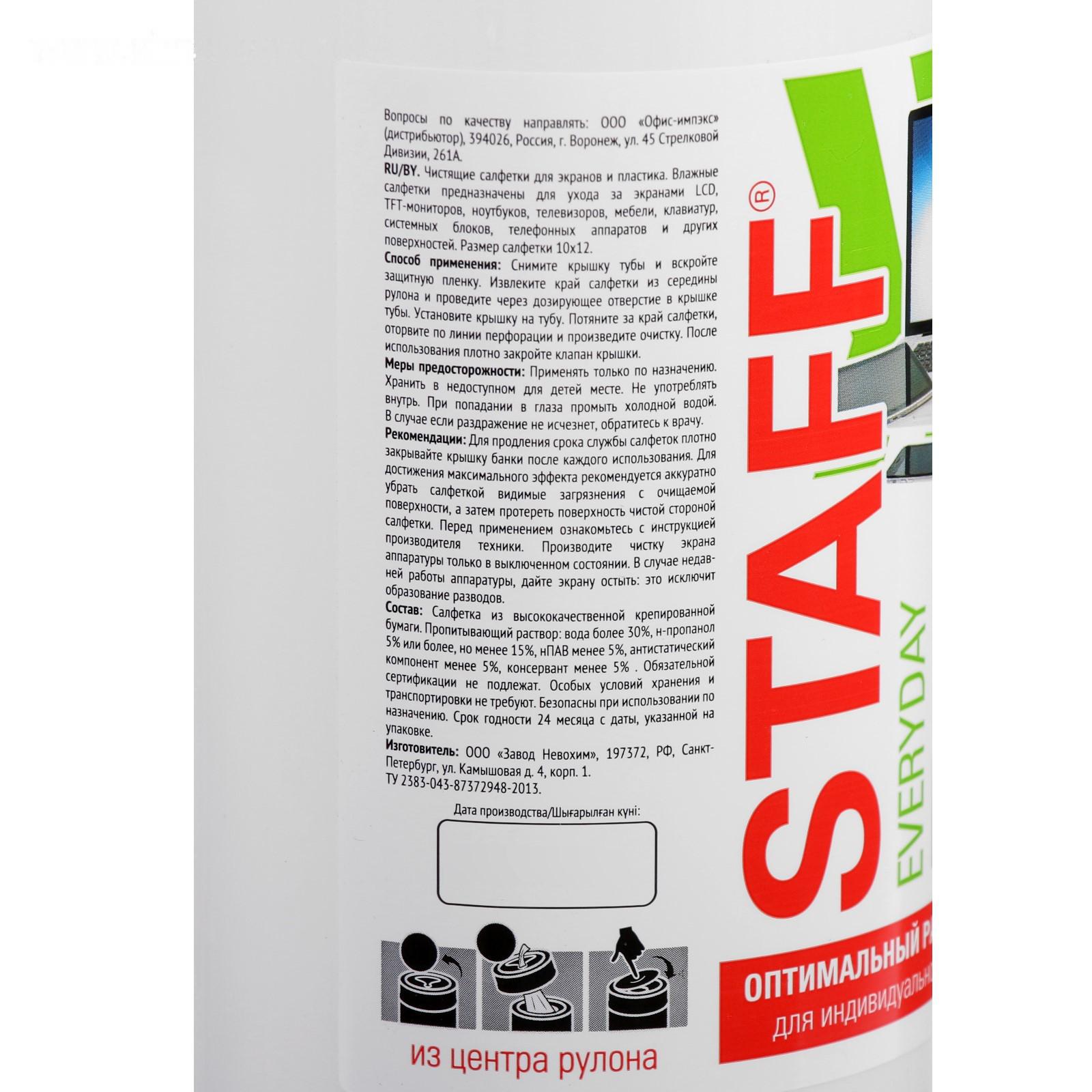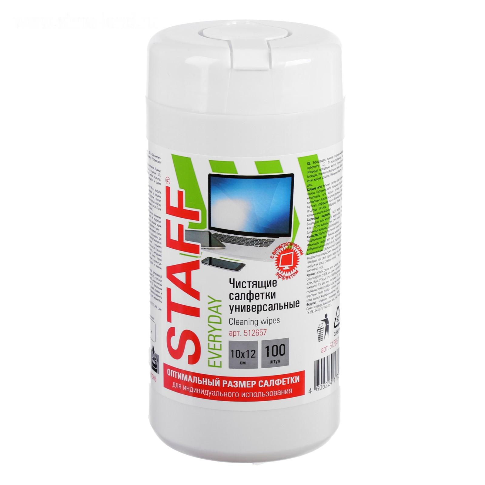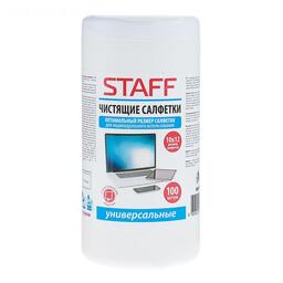 Салфетки чистящие для экранов и пластика, универсальные, STAFF, туба 100 шт.,, влажные