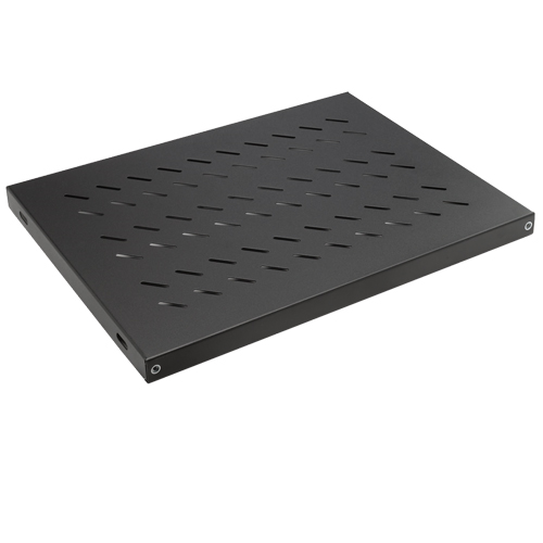 Дополнительная информацияИзготовлена из высокочественной стали с порошковой окраской черного цвета RAL 9005. Полотно полки - перфорированное, имеет глубину 370 мм. Полка крепится в 4 точках к передним и задним направляющим. Максимальная допустимая нагрузка - 50 кг.
