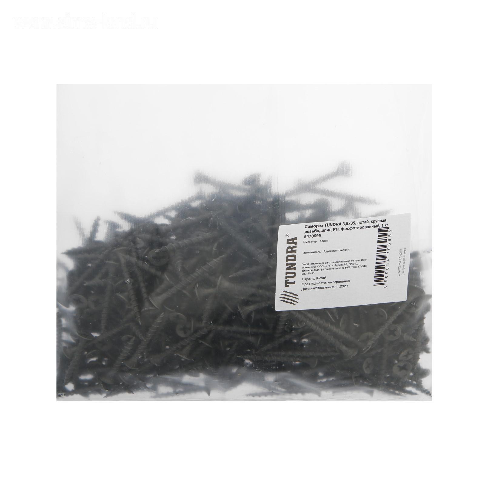 Саморез ТУНДРА PREMIUM krep 3,5х35 мм, потай, крупная резьба, шлиц PH, фосфатированный, 1 кг