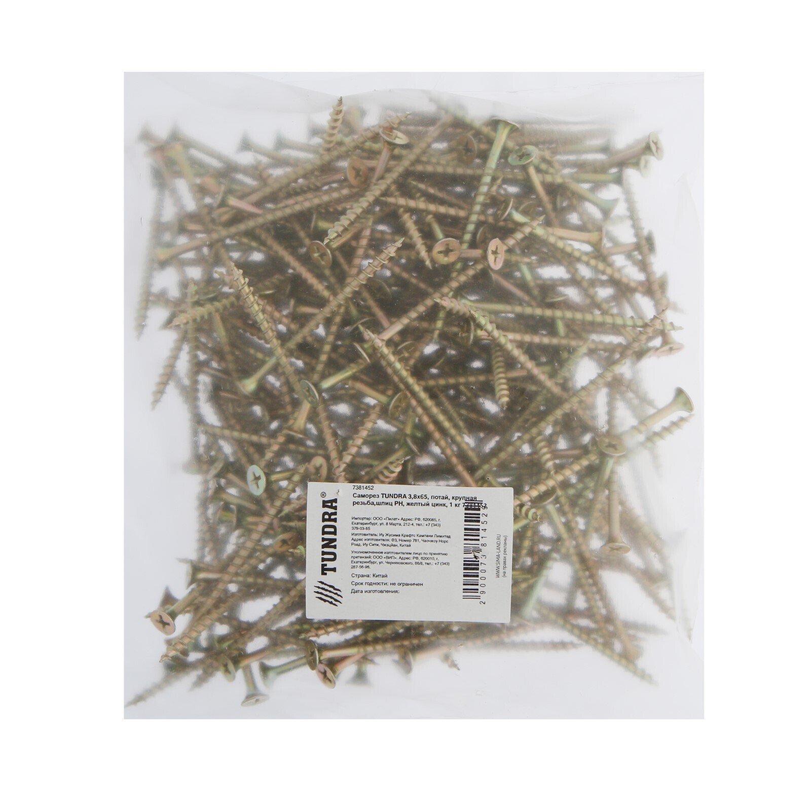 Саморез ТУНДРА PREMIUM krep 3,8х65 мм, потай, крупная резьба, шлиц PH, желтый цинк, 1 кг