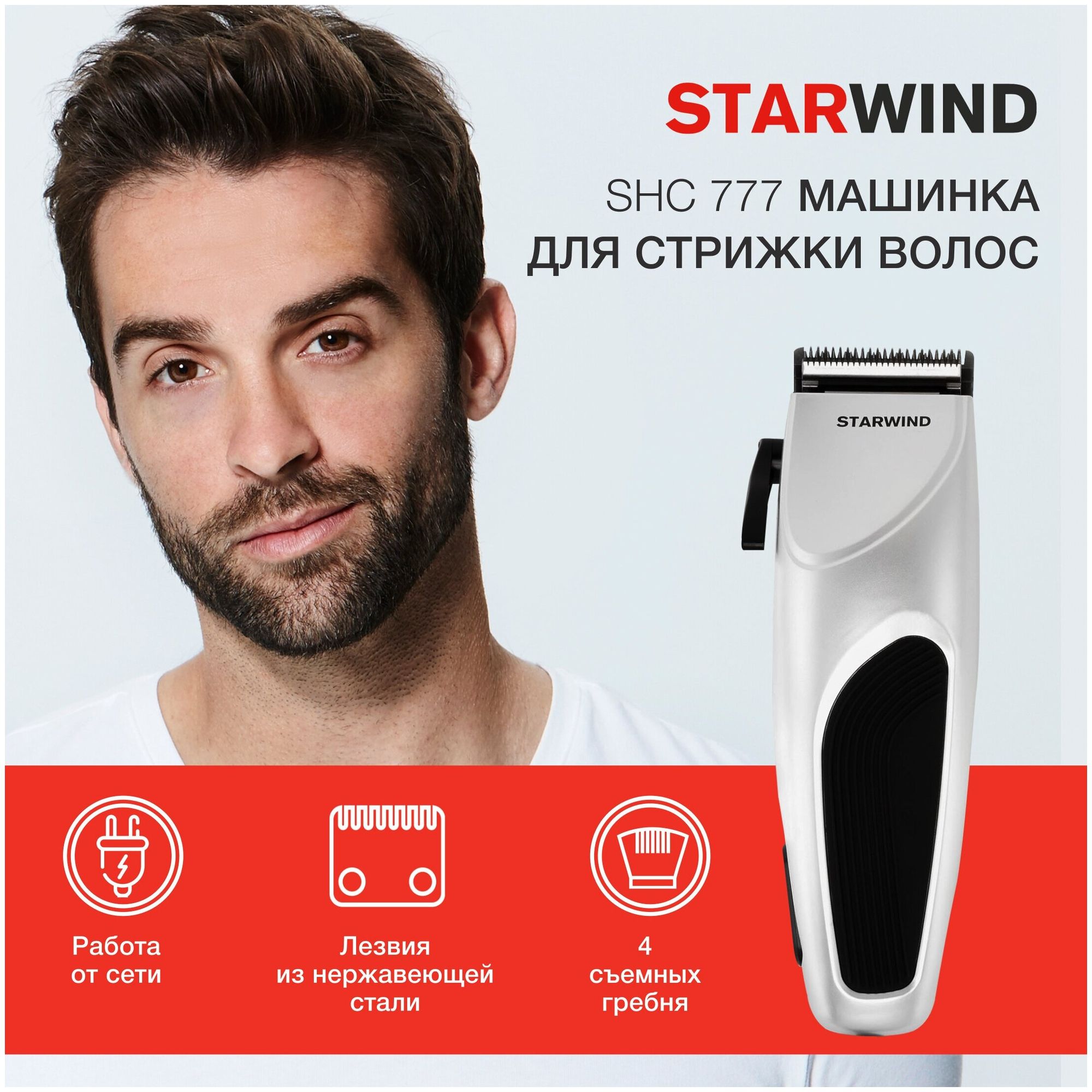 Описание товара Машинка для стрижки Starwind SHC 777 серебристый/черный 8Вт (насадок в компл:4шт)