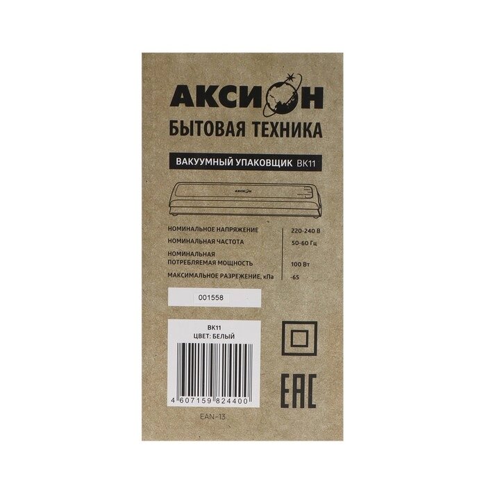 Вакуумный упаковщик "Аксион" ВК-11, 37х10х6 см, белый
