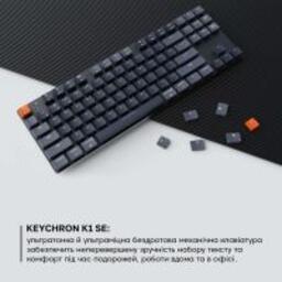 K1 SE – ультратонка бездротова механічна TKL-клавіатура спроектована з посиленим алюмінієвим верхнім корпусом та пластиковим нижнім корпусом. Підключення Bluetooth 5.1 забезпечує бездоганний зв'язок у будь-якому місці. Клавіатура також укомплектована кабелем типу C для оптимального підключення та сумісності з усіма пристроями. K1 SE може підключатися до трьох пристроїв через Bluetooth і сумісний з пристроями Mac, Android і Windows.
