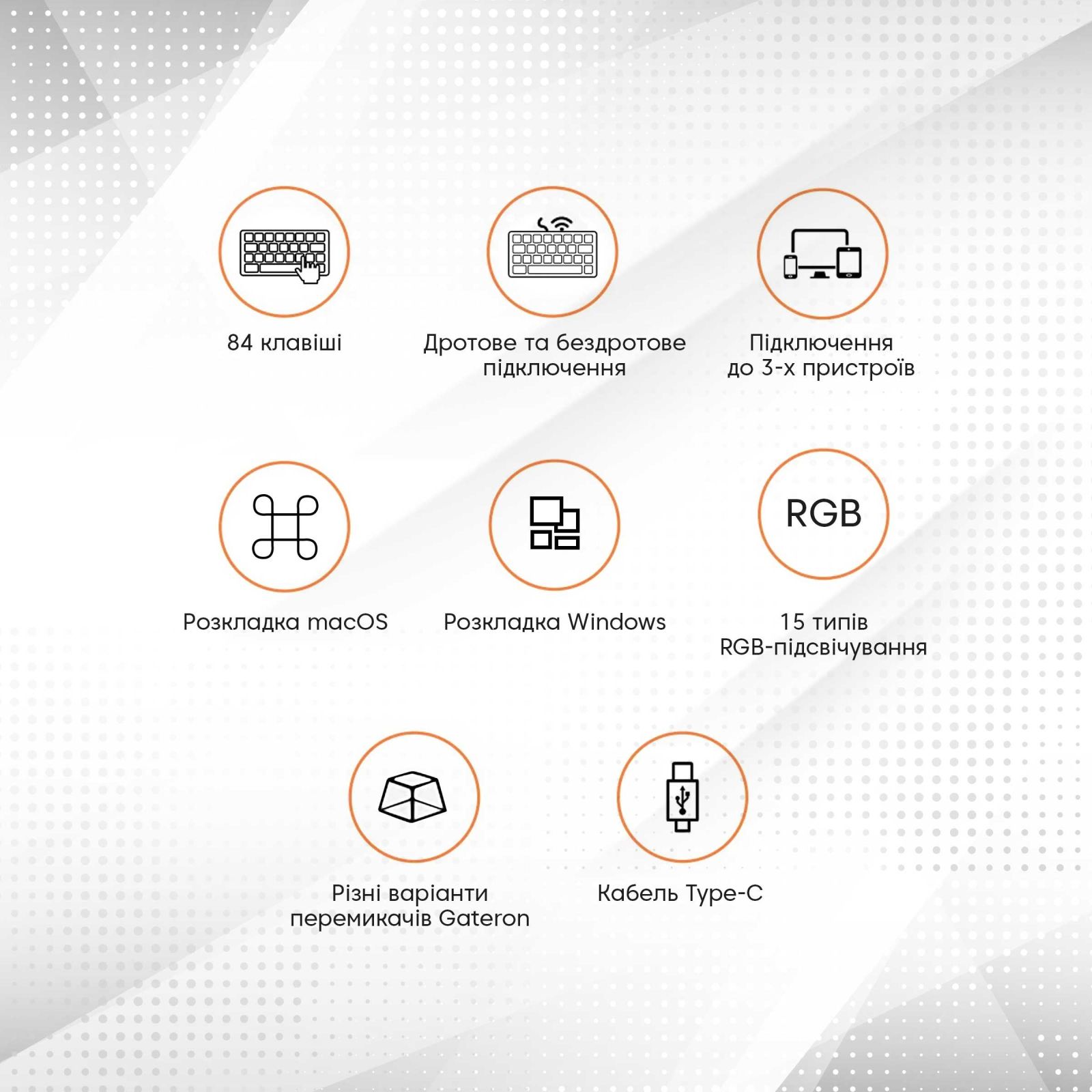 K2 - це супертактильна бездротова клавіатура, що надає вам усі необхідні клавіші та функції, при цьому зберігаючи при цьому компактність, з найбільшою батареєю серед механічних клавіатур. Підключається до трьох пристроїв через Bluetooth і легко перемикається між ними. Завдяки високонадійному чіпсету Broadcom Bluetooth 5.1 з широкою сумісністю K2 найкраще підходить для дому, офісу та легких ігор при підключенні до вашого смартфона, ноутбука та iPad. Клавіатура також має дротовий режим із підключенням USB Type-C.