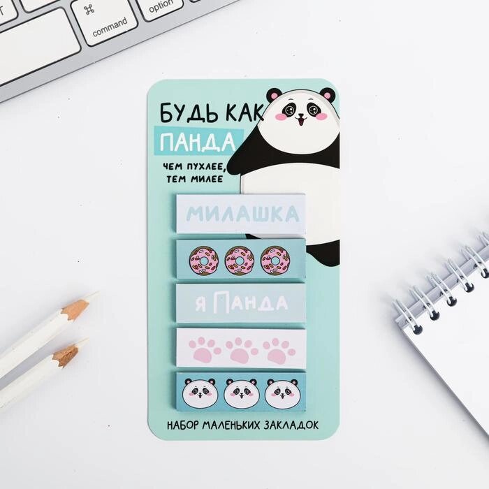 Стикеры-закладки, на подложке "Будь как панда" 5 шт, 30 л/шт