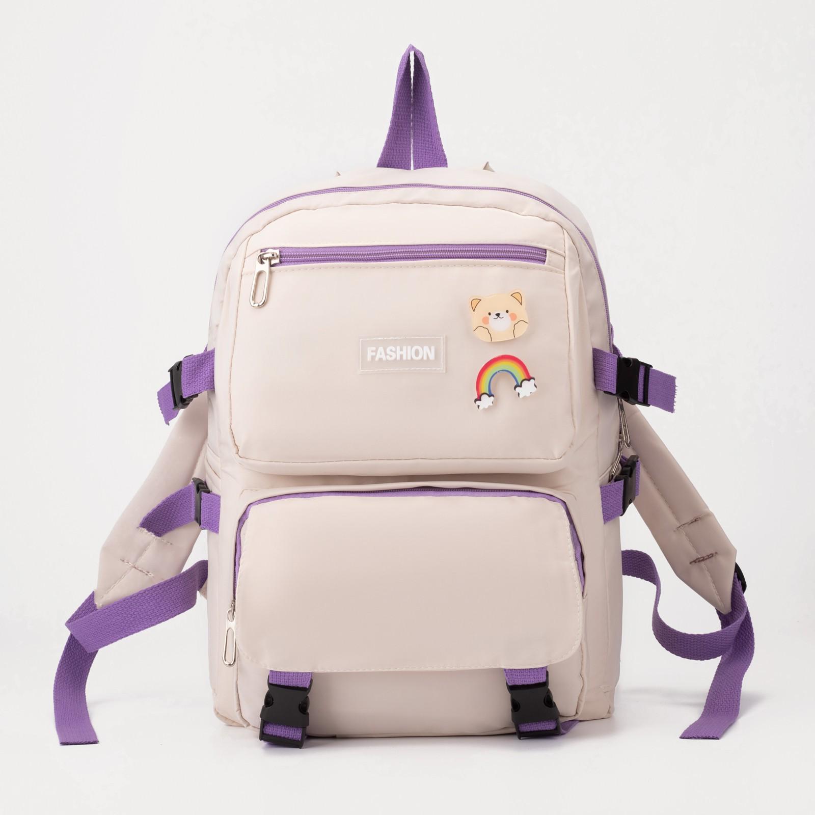 Рюкзак на молнии, 2 наружных кармана, 2 боковых кармана, цвет бежевый