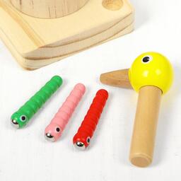 Развивающая игра "Достань червячка из дерева" 20,5×9×9 см, 10 червячков