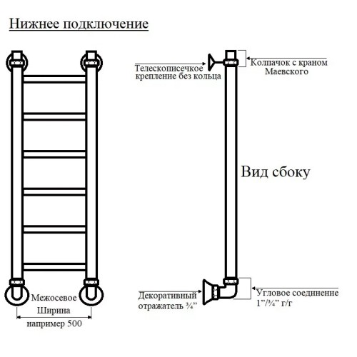 Полотенцесушитель Маргроид Вид 1 Техно нижнее подключение, форма - лесенка.