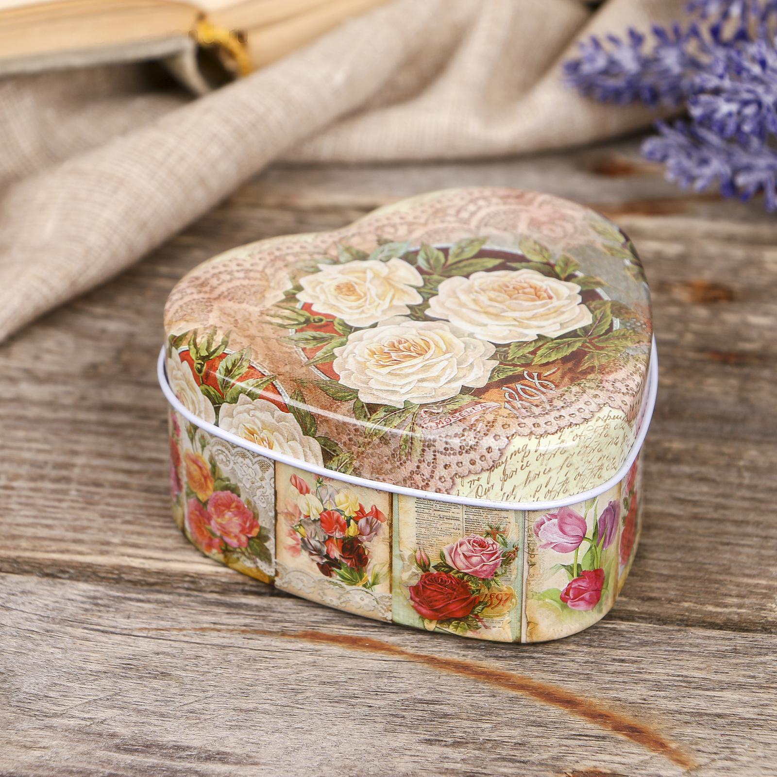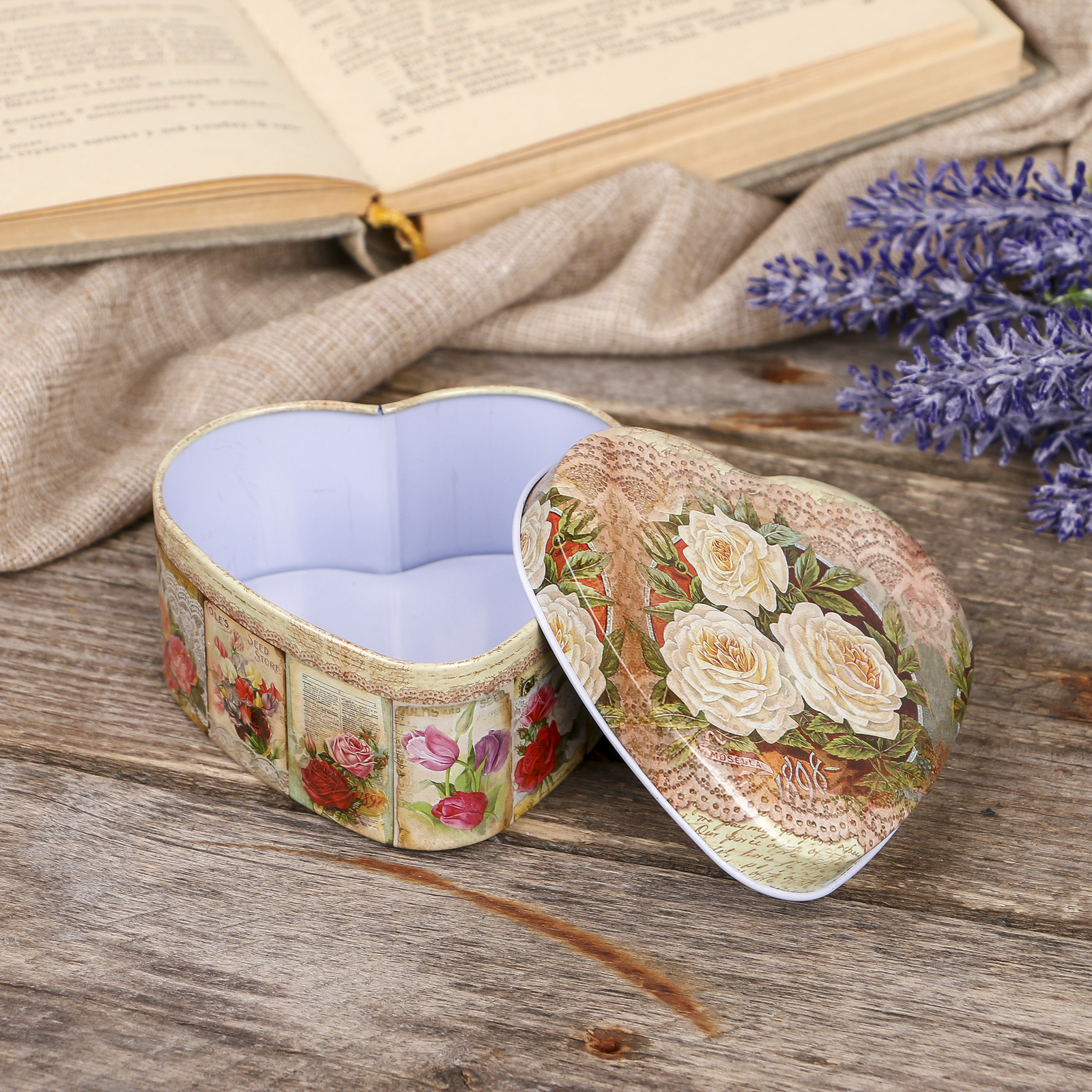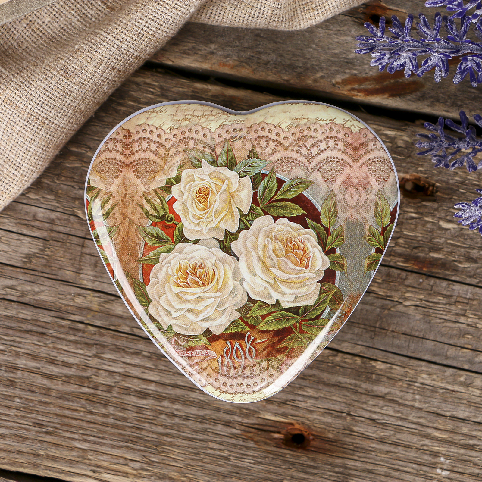 Шкатулка металл сердце "Белые пионы" 4,2х9х9 см