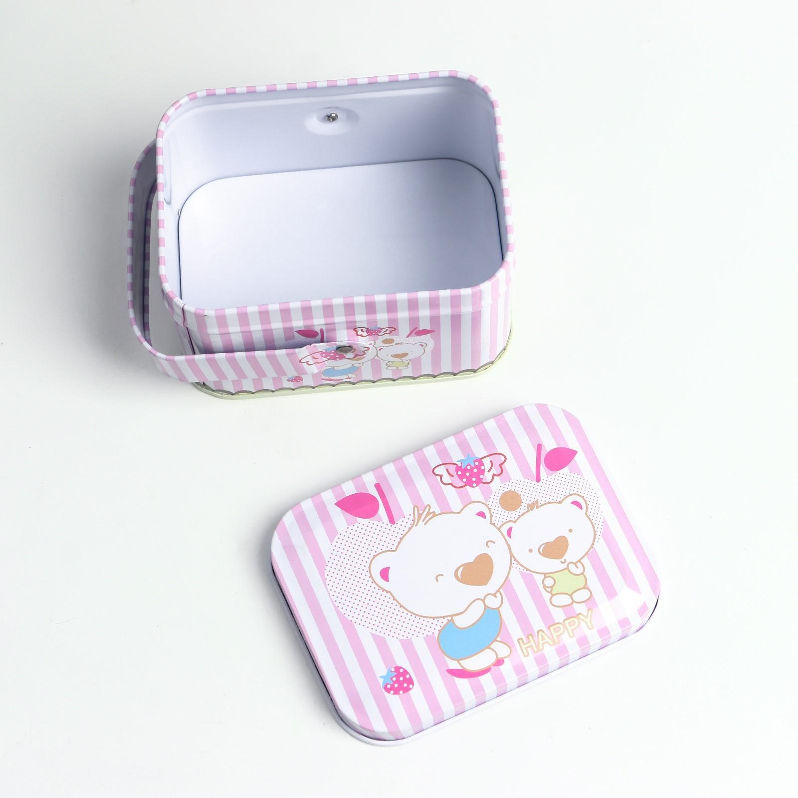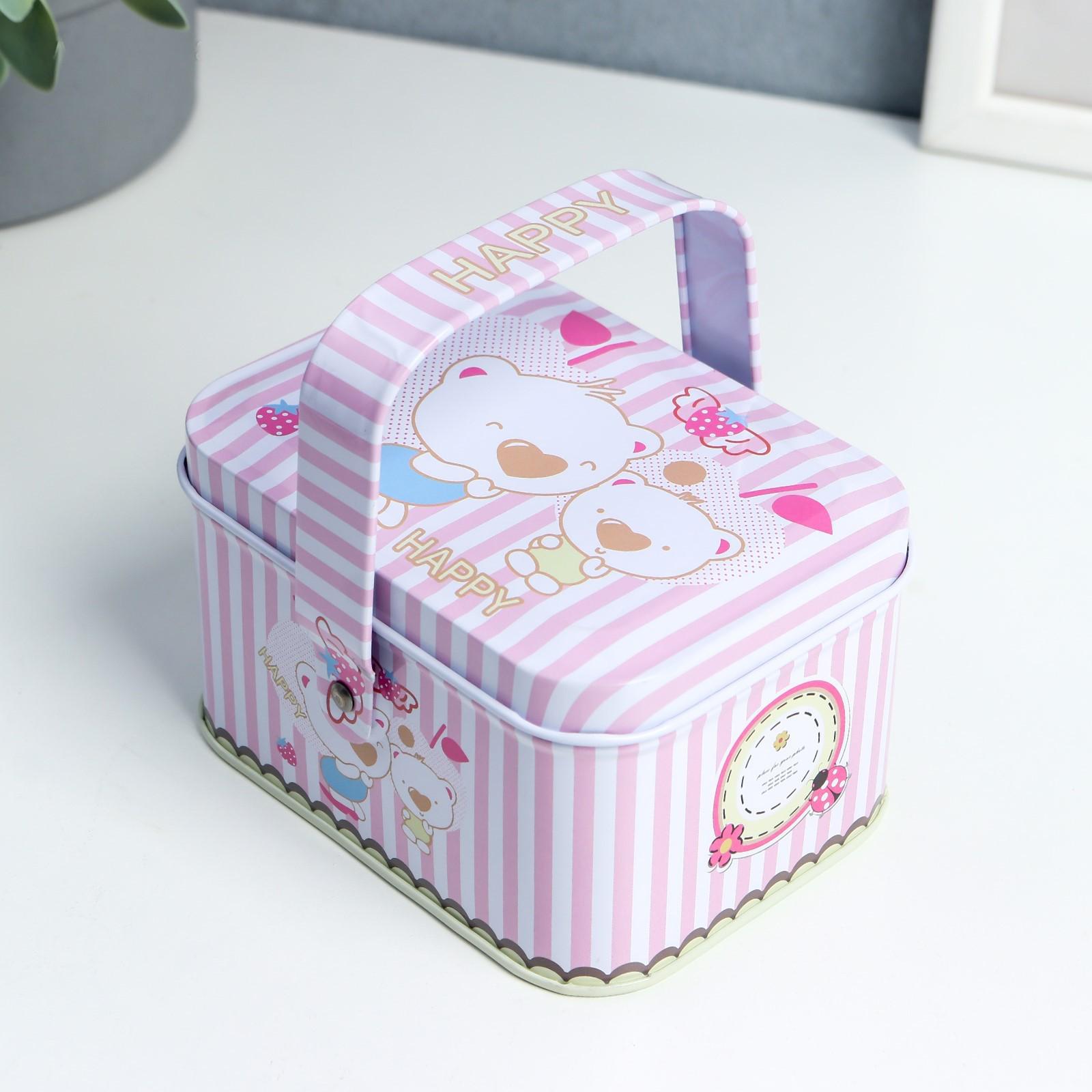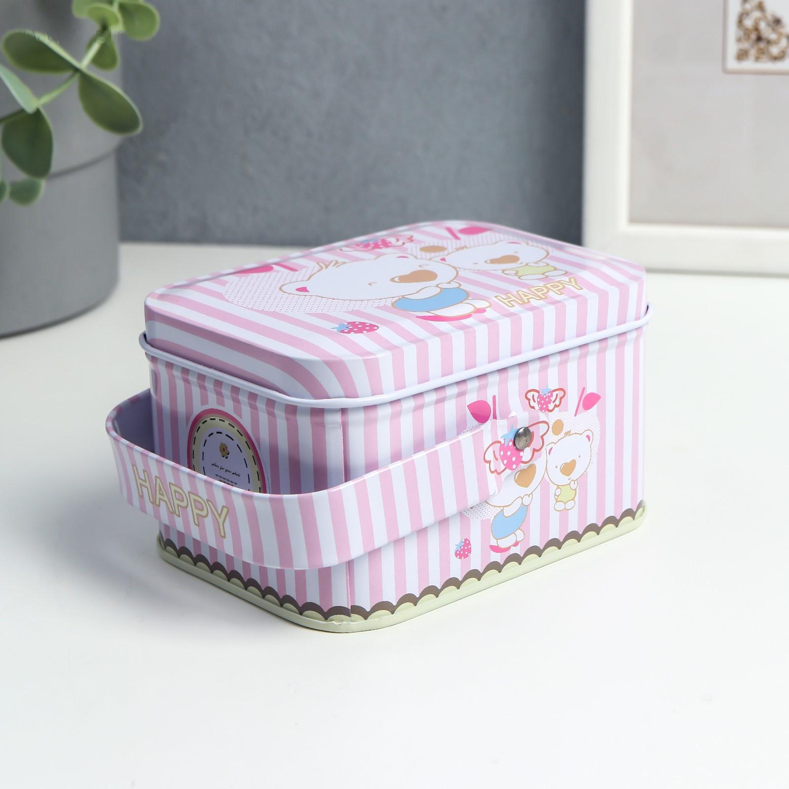 Шкатулка металл прямоугольная с ручкой "Влюблённые медвежата" розовый 10х8х6 см