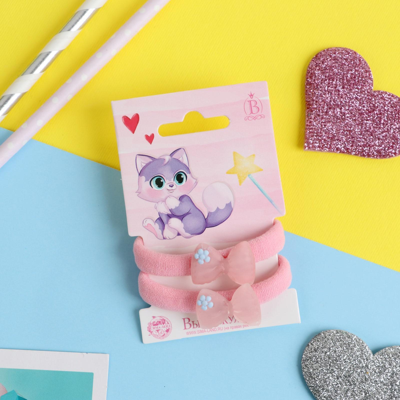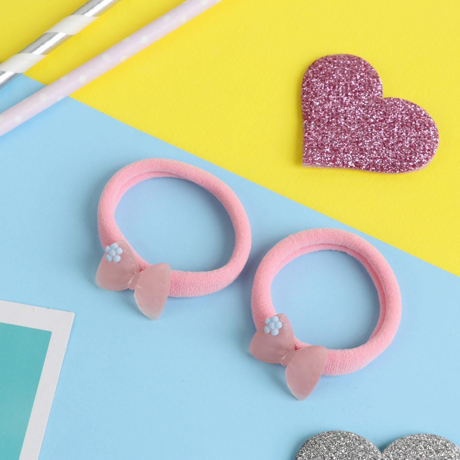 Резинка для волос "Кроха" (набор 2 шт) бантик, 3,5 см, розовый