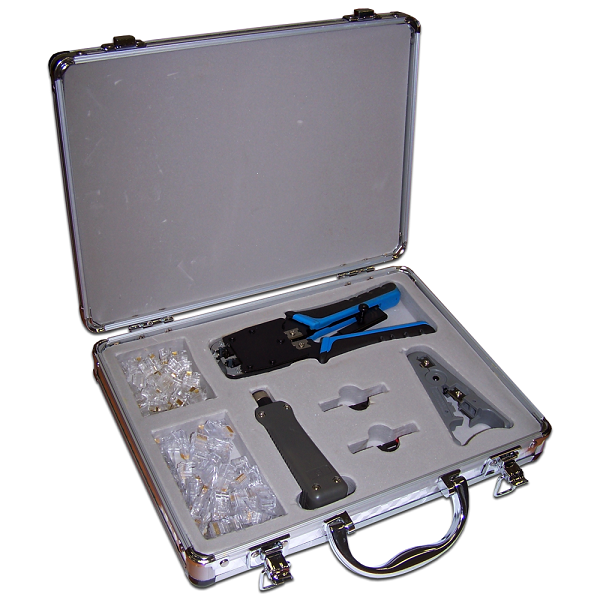 НазначениеНабор инструмента предназначен для изготовления телефонных и компьютерных соединительных шнуров, а также монтажа кабеля типа витая пара на патч-панелях, розетках и кроссах. Инструменты, входящие в набор, позволяют производить операции по обрезке и зачистке кабелей, разделке кабеля на IDC-разъемах, а также обжиму коннекторов RJ-12 и RJ-45.