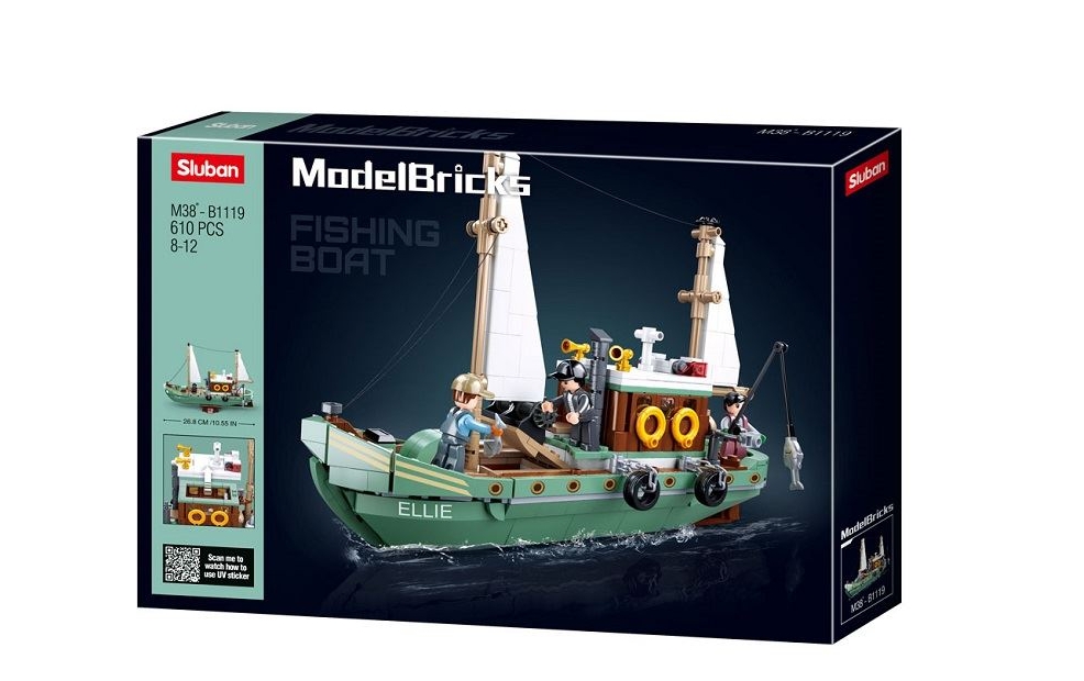 Конструктор SLUBAN Рыболовная лодка 610 деталей в коробке развивает творческое мышление, усидчивость и мелкую моторику. Выполнен из безопасных для здоровья ребенка материалов.
