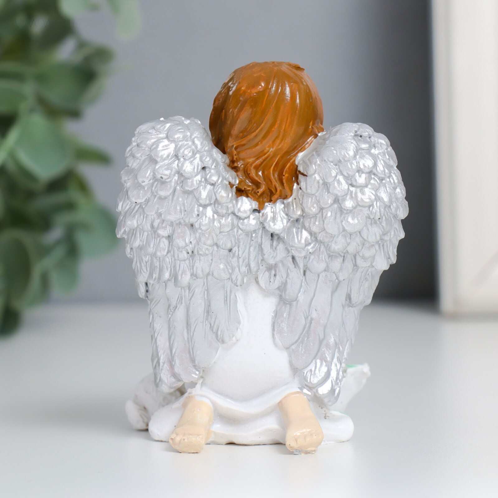Сувенир полистоун "Девочка ангел с кроликом и цветами" 6х6,5х8,5 см