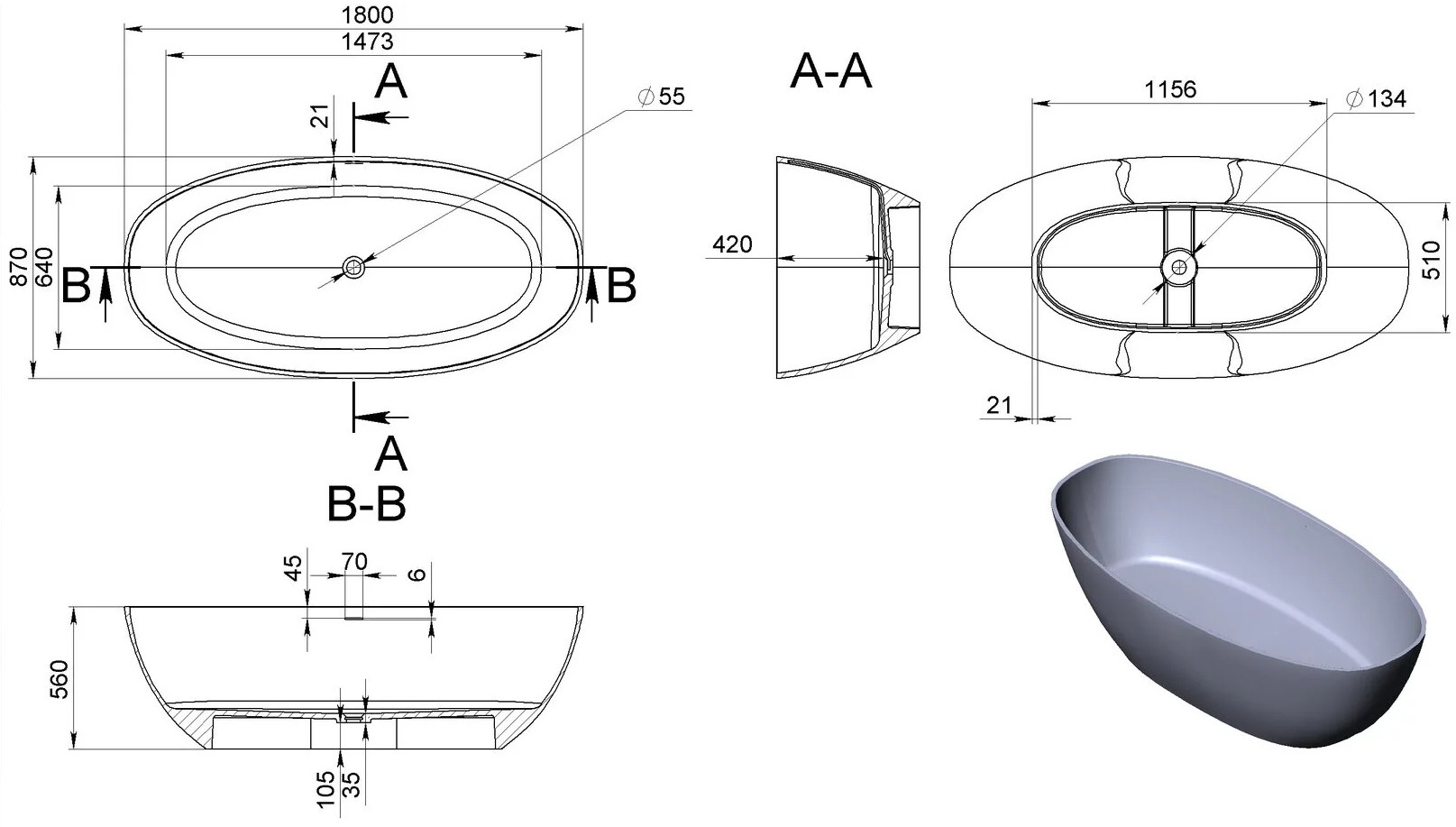 • Форма овальная