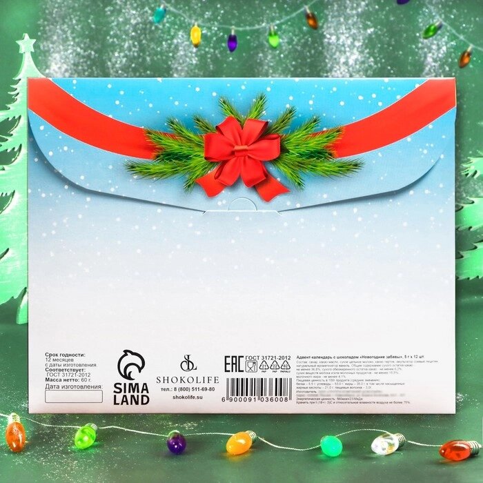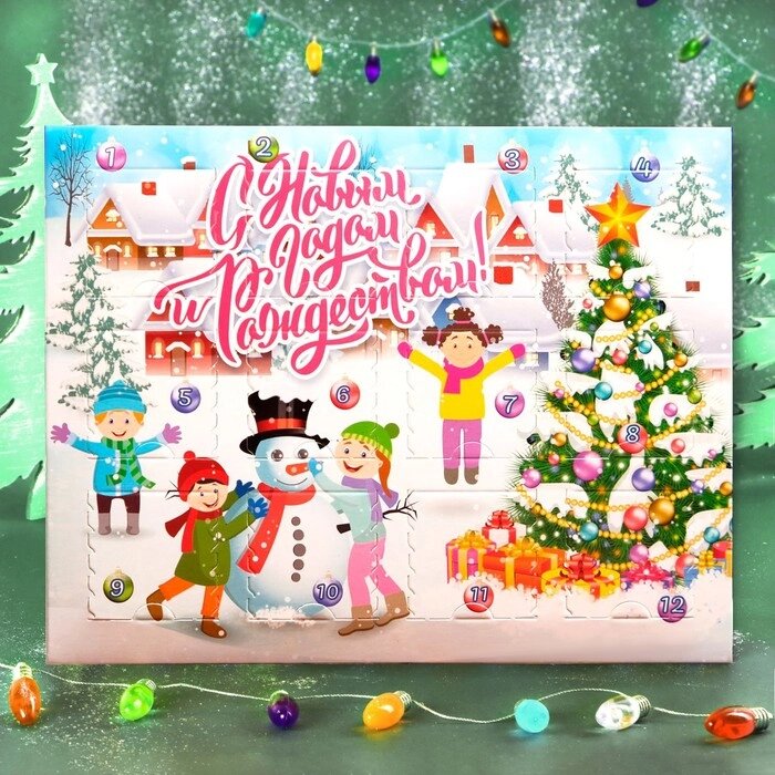 Адвент календарь с шоколадом "Новогодние забавы", 12 х 5 г