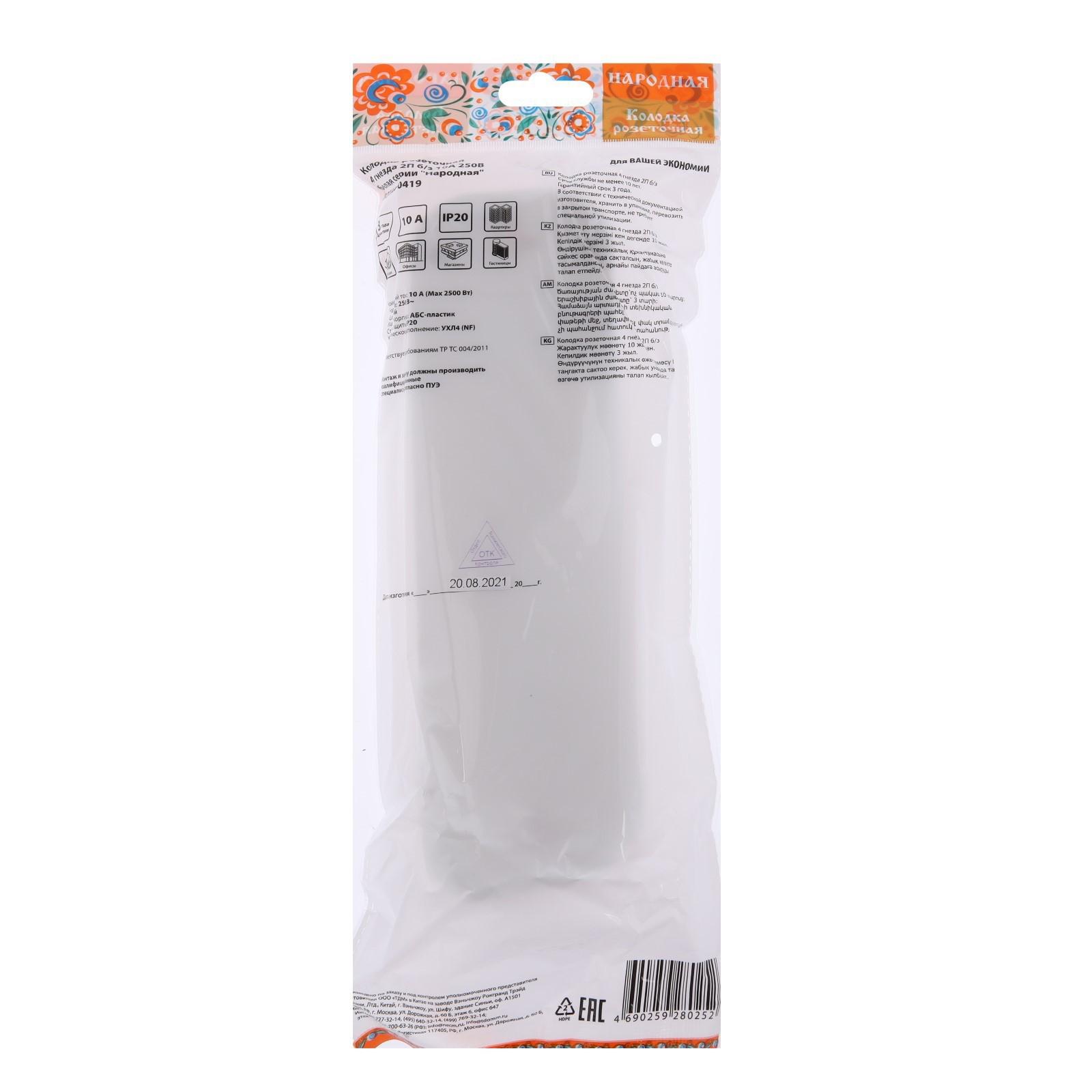 Колодка розеточная TDM"Народная" 2П, 4 гнезда, 10А, 250В, без заземления, белая, SQ1806-0419