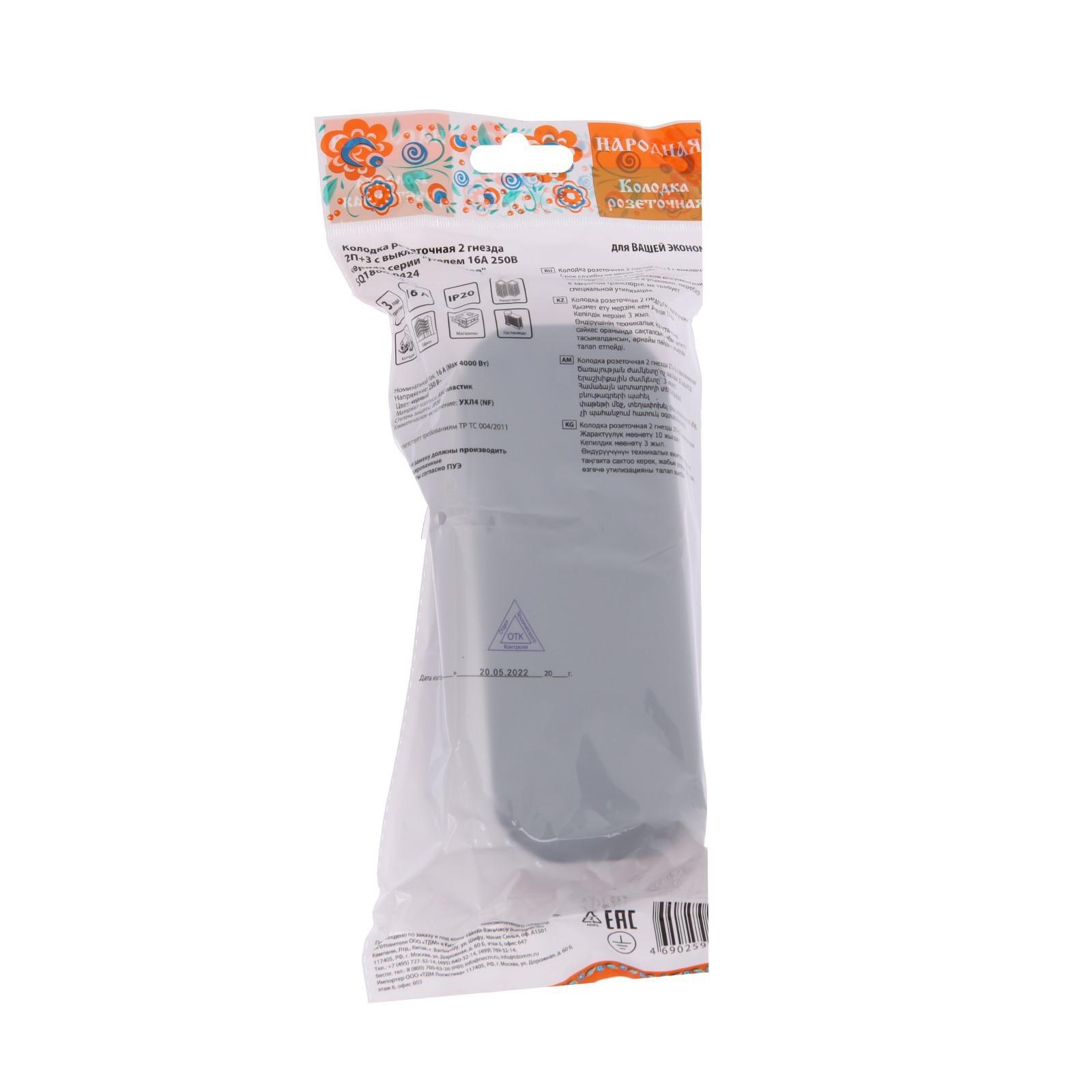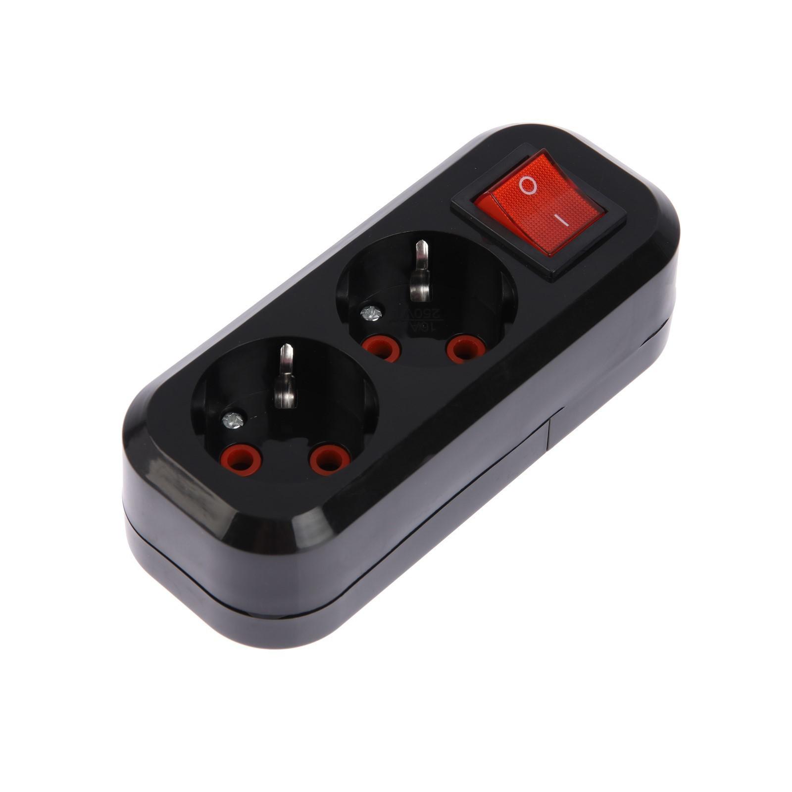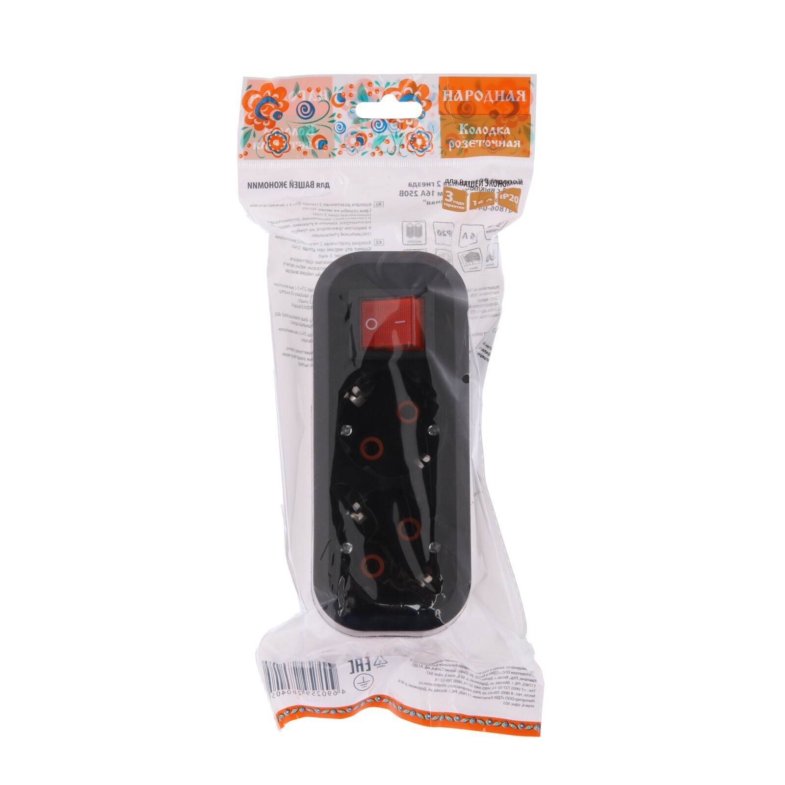 Колодка розеточная TDM "Народная" 2-местная, с/з, с выключателем, 16 А, черная, SQ1806-0424