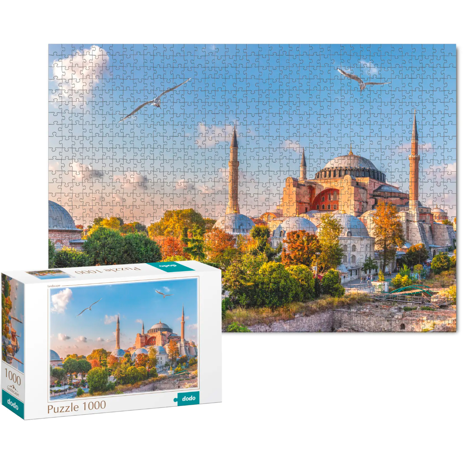 Пазл DoDo Собор святої Софії. Туреччина являє собою привабливу ілюстрацію, що складається з 1000 деталей . Дитині чи дорослому необхідно знайти потрібне місце кожної деталі пазла та правильно з'єднати їх між собою, щоб зібрати зображення як на коробці.