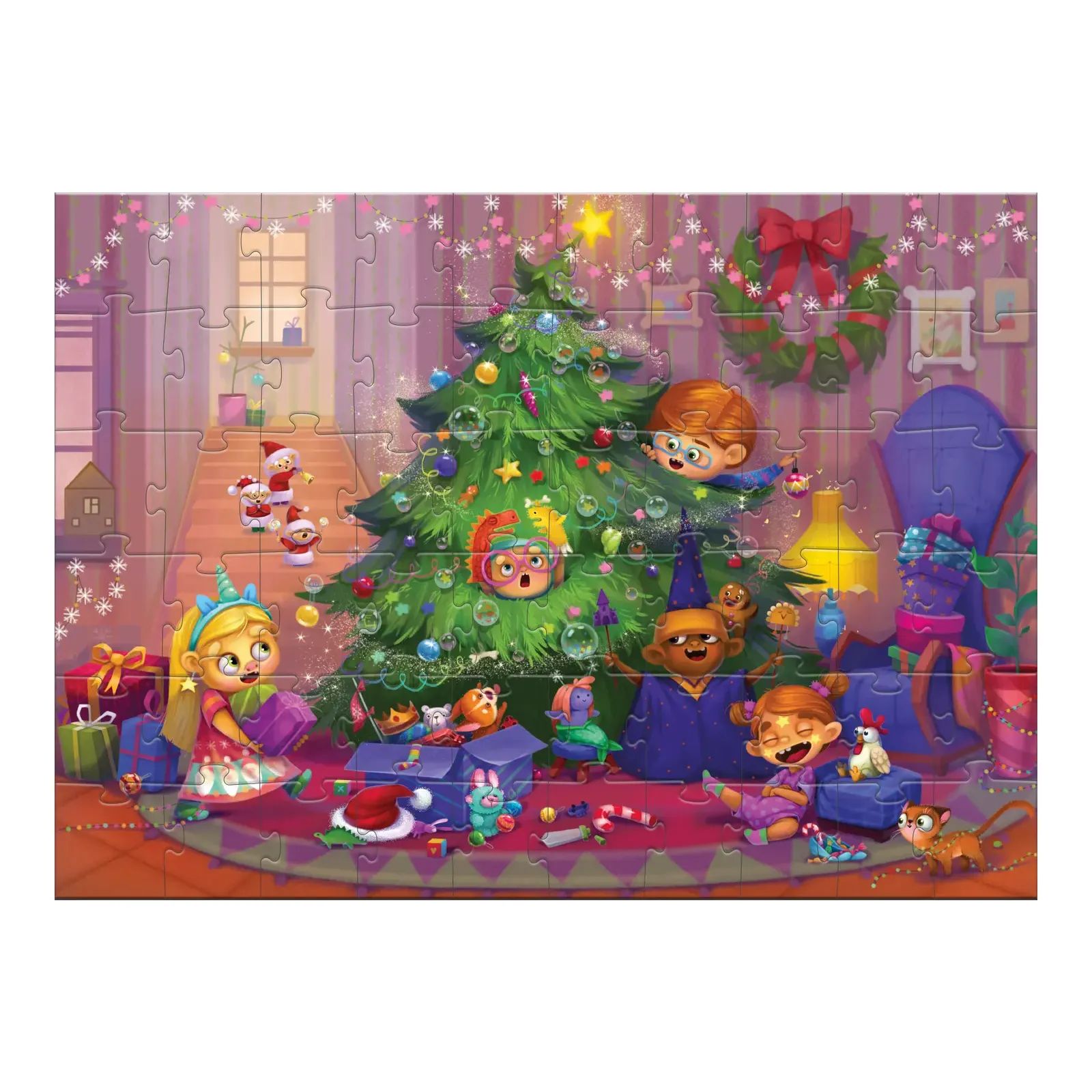 Цей пазл створить новорічну атмосферу у вашому будинку та надихне на спільну підгототовку до новорічних свят. Підсильний для складання діткам з 4 років.