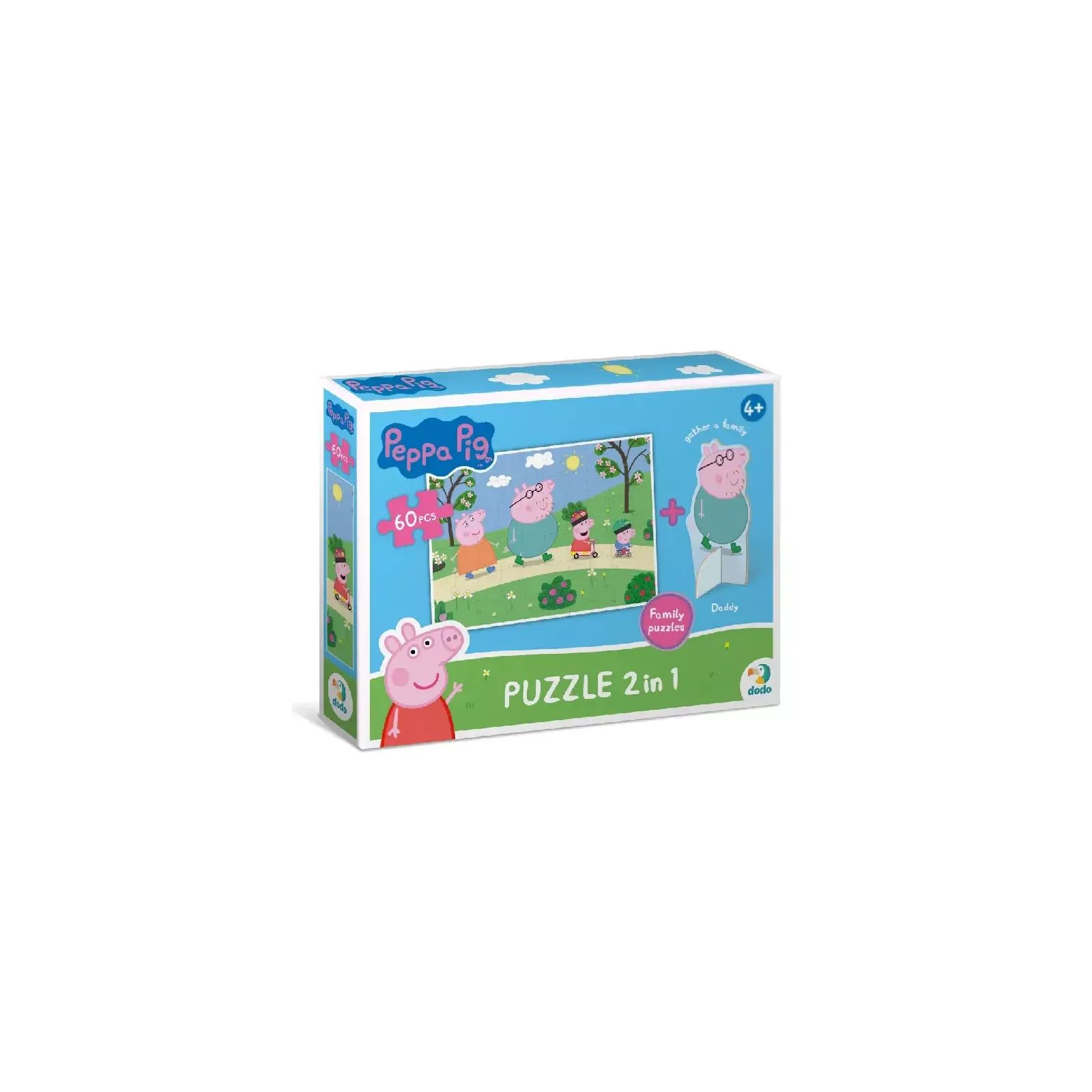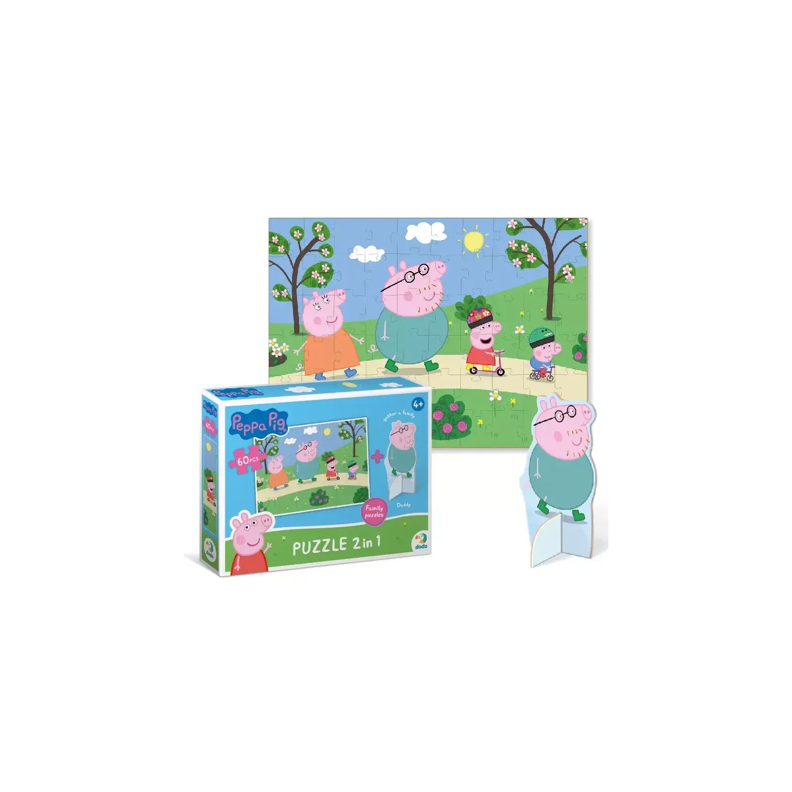 Пеппа, її брат Джордж та їхні батьки пішли гуляти. Який гарний парк! Тут можна кататися не велисопеді чи самокаті, гратися та ловити метеликів. Головне при розвагах — не забувати про безпеку. У комплекті — фігурка з Татом Свином. Краще за пазл від Dodo може бути тільки пазл, у додаток до якого буде колекційна фігурка з улюбленим персонажем. І у нас є такі — з веселеми героями “Свинки Пеппи” У серії є 4 пазли, які зображують пригоди родини свинок. Та у комплекті — фігурка з одним з персонажів. Збери всі!