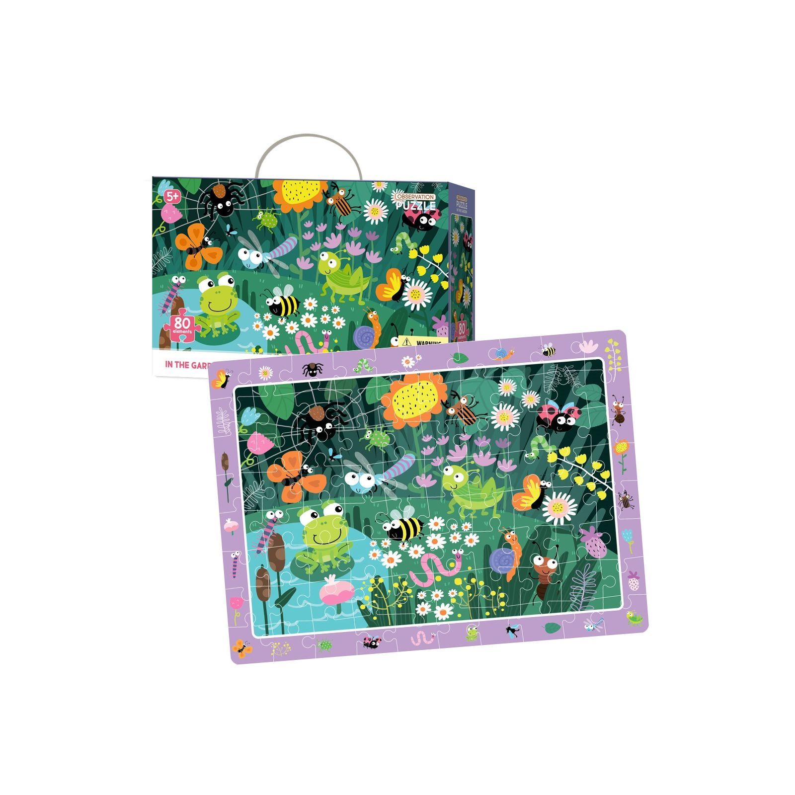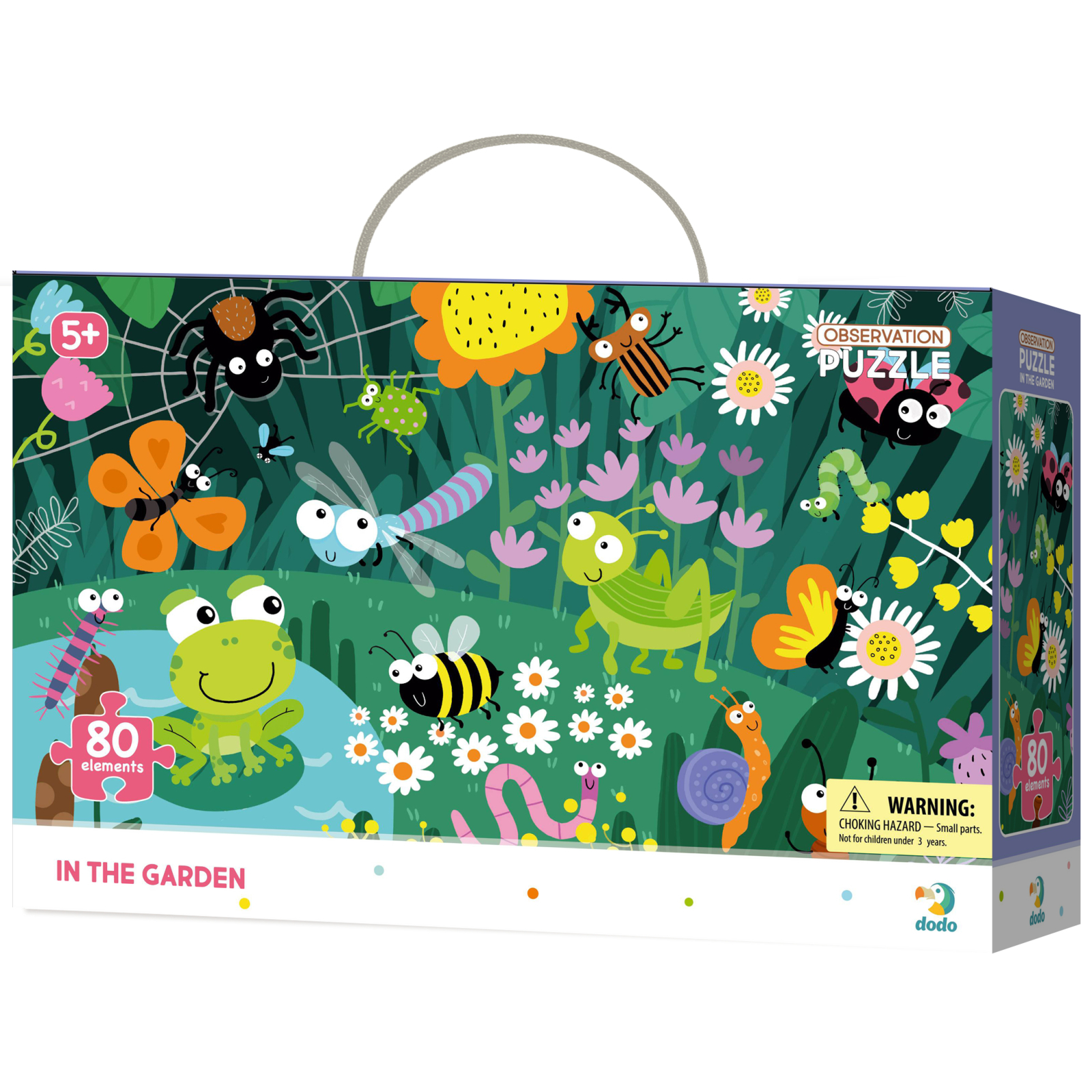 Що роблять комашки, сховавшись у глибині садка, де ви не можете їх побачити? Звичайно — влаштовують шалену вечірку. Вони прикрашають все навколо квітами, збираються навколо ставка та обговорюють плітки, які підслухали упродовж дня. А ви побачили всіх комашок? Особливість обсерваційного пазла — кольорова рамка, на якій зображені елементи пазлу. Задача дитини — знайти картинки з рамки на великому пазлі. Гра з таким пазлом вчить малечу увазі до деталей та швидкості реакції.