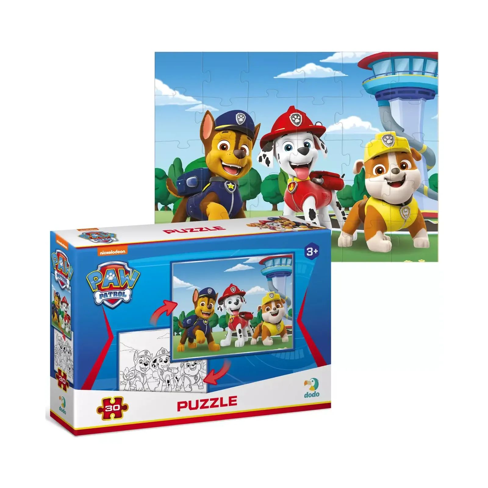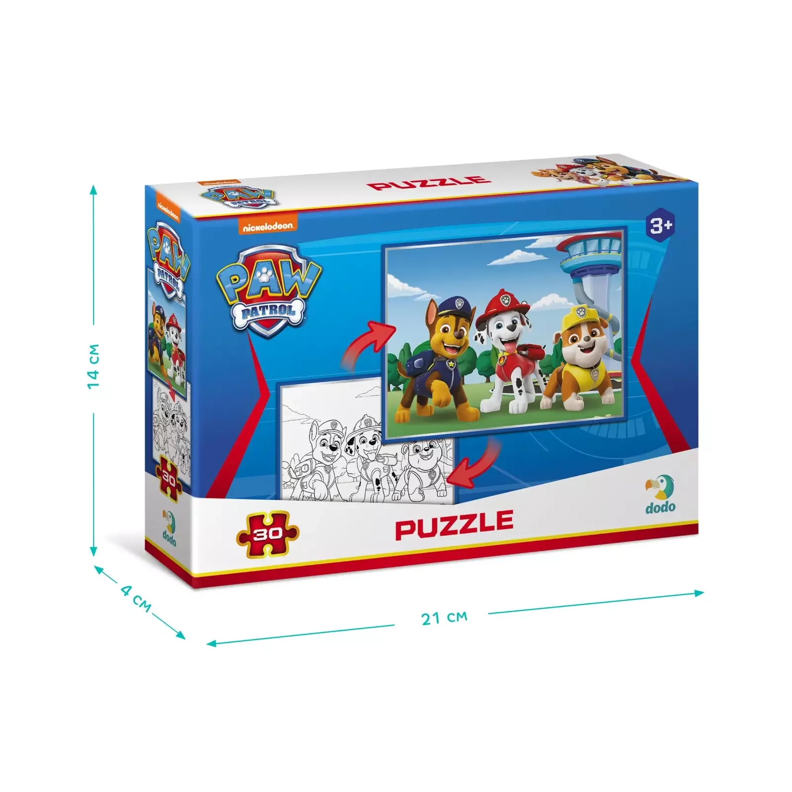 Хтось у небезпеці? Команда цуциків поспішає на допомогу! Гончик, Маршал та Кремез вже готові захищати, рятувати та розважати всіх-всіх малюків. Улюблені персонажі дитячого мультфільму на нових пазлах Dodo. Малята можуть вивчати нові слова, вигадувати історії та головне — дізнатися про дивовижні пригоди Щенячого потрулю. І не на звичайному пазлі, а на двосторонньому! Спочатку збери картинку, а потім — розмалюй її. Пазли на 30 елементів розраховані на дітей від 3-х років, вони яскраві, виконані з цупкого картону та зручні у грі.