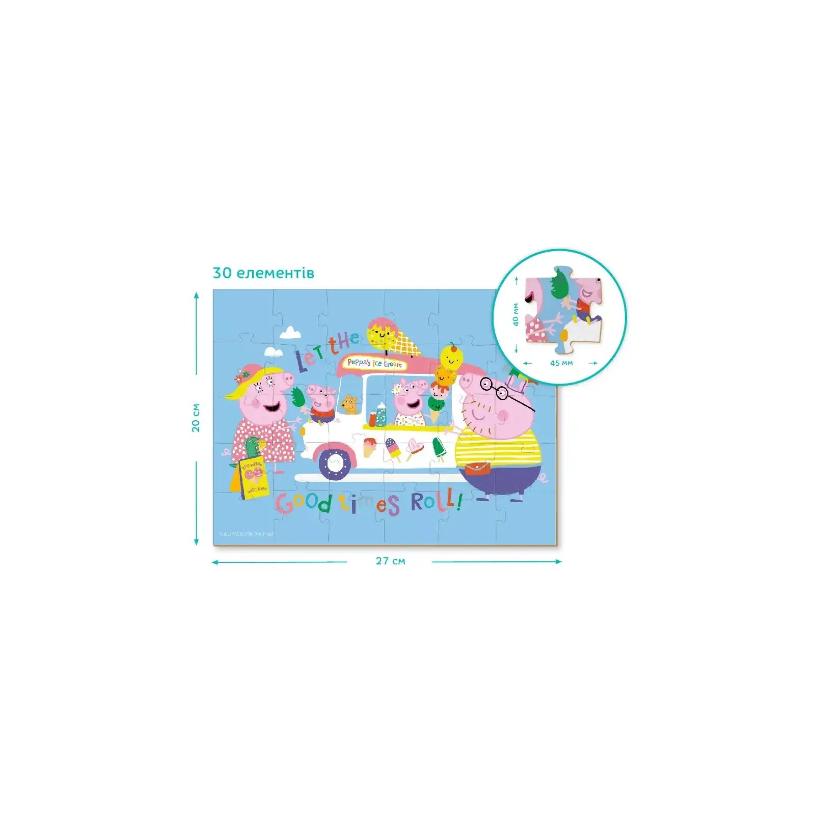 Улюблені персонажі дитячого мультфільму на нових пазлах Dodo. Малята можуть вивчати нові слова, вигадувати історії та головне — дізнатися про дивовижні пригоди Синки Пеппи, її родини та друзів. Пазли на 30 елементів розраховані на дітей від 3-х років, вони яскраві, виконані з цупкого картону та зручні у грі.