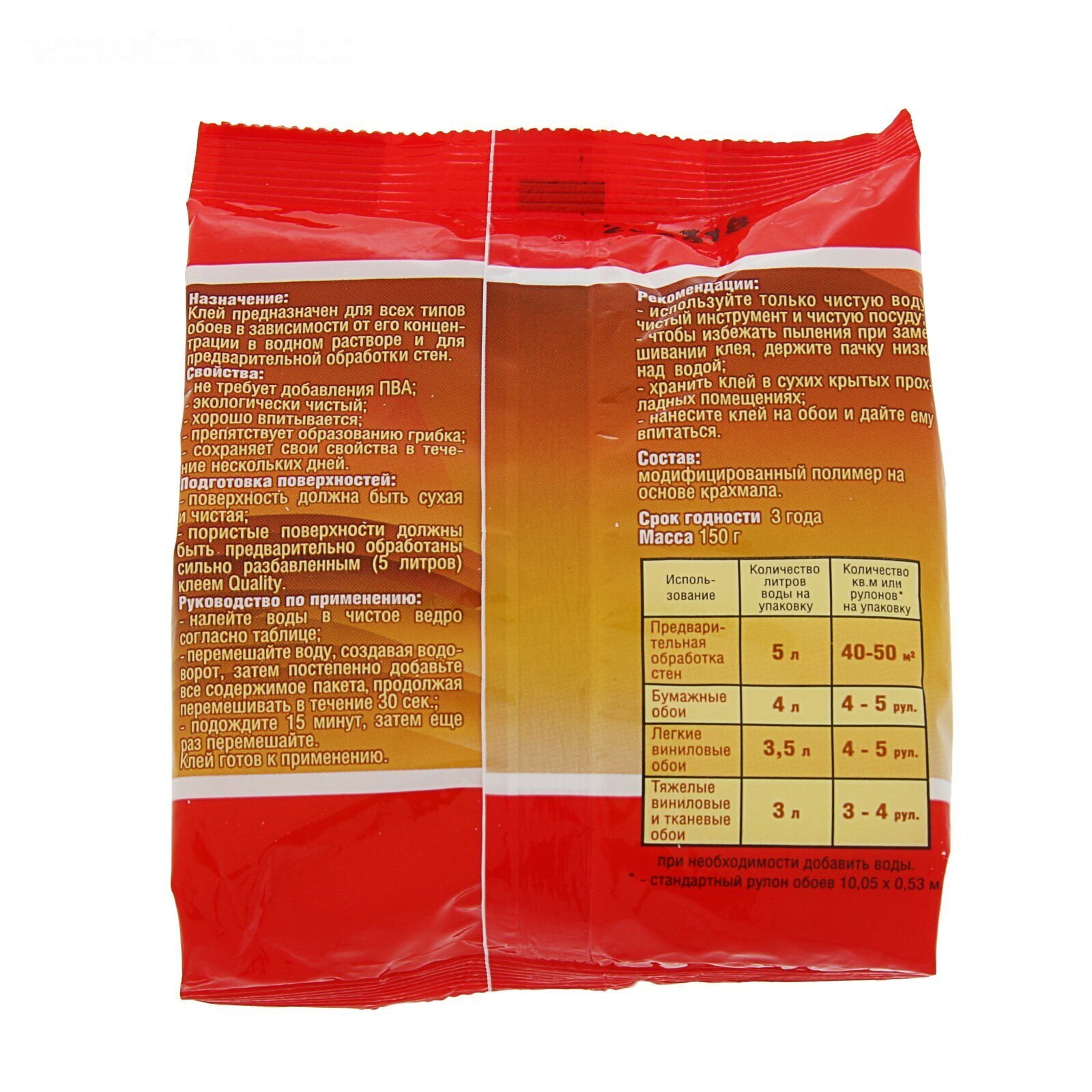 Клей обойный Quality, универсальный, мягкая упаковка, 150 г