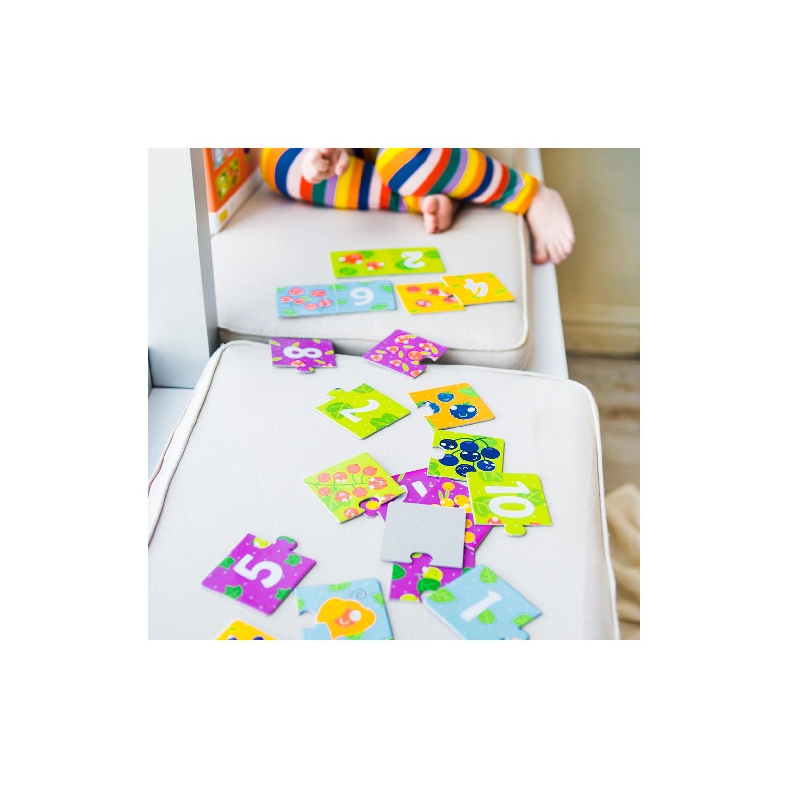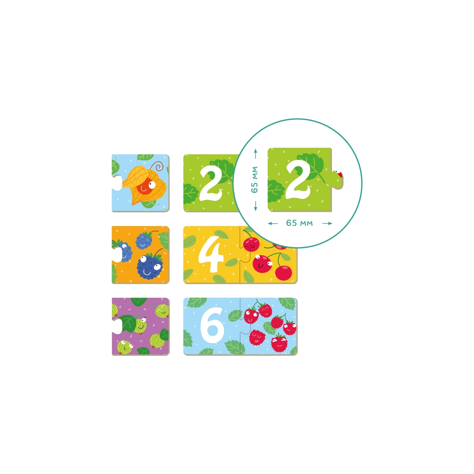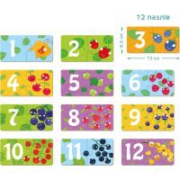 Кожен пазл складається з двох елементів, потрібно до кожного елемента з цифрою підібрати відповідний елемент із ягідками.