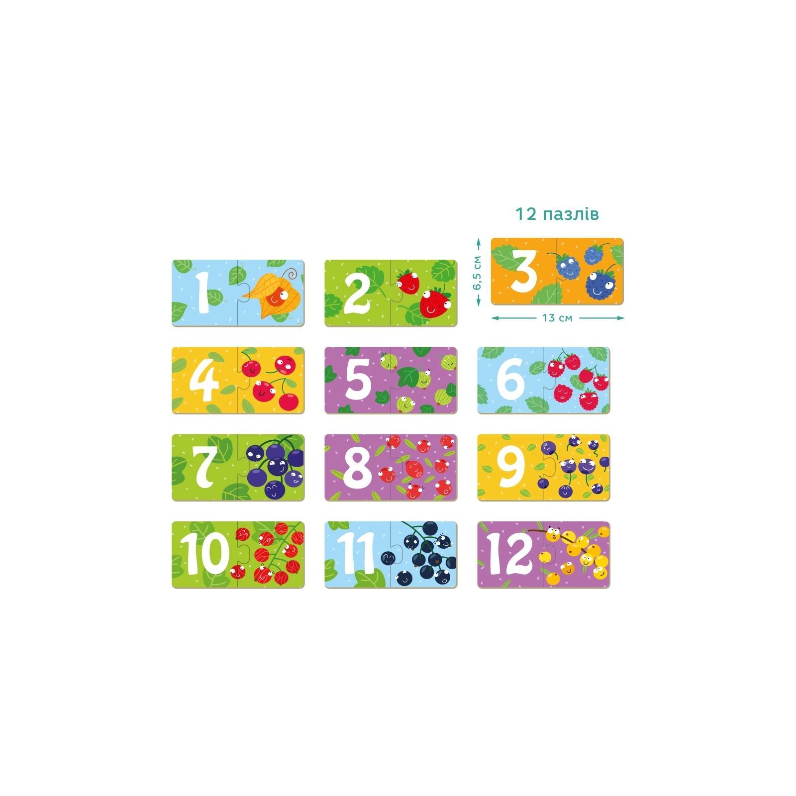 У наборі 12 пазлів із 2 елементів
