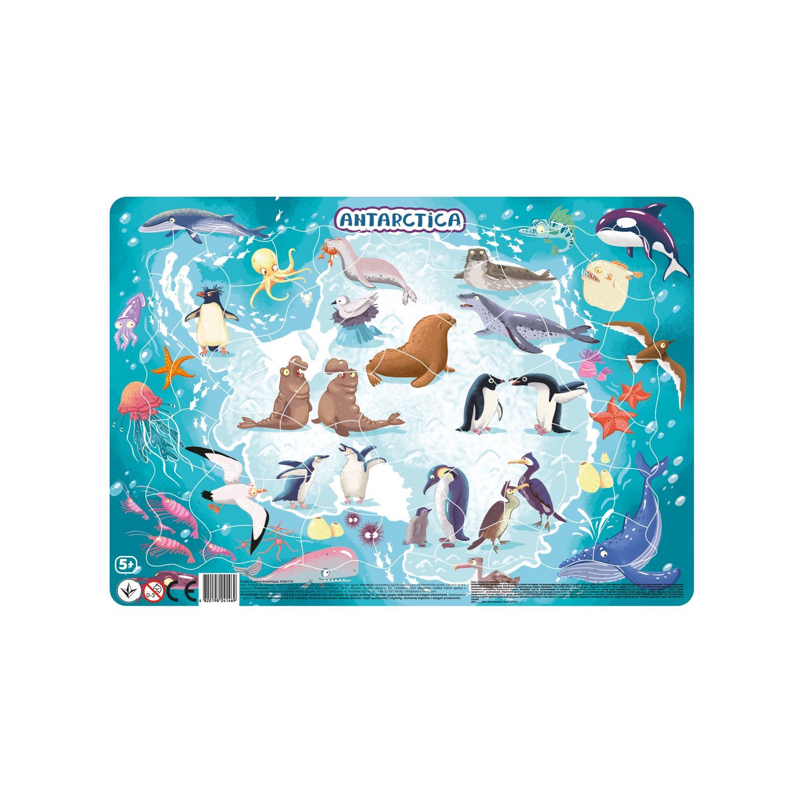 Пазл із рамкою з дуже щільного картону, на підкладці є контур елементів, щоб малюку було легше скласти пазл.