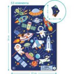 Пазл із рамкою DoDo Космос потішить вашу дитину яскравою картинкою. Завданням дитини буде підбір пазлів у правильній послідовності, а це й просто гарна розвага та розвивальна гра. На підкладці є контур елементів, щоб дитині було легше скласти пазл. Підійде для дівчаток і хлопчиків від 5 років.