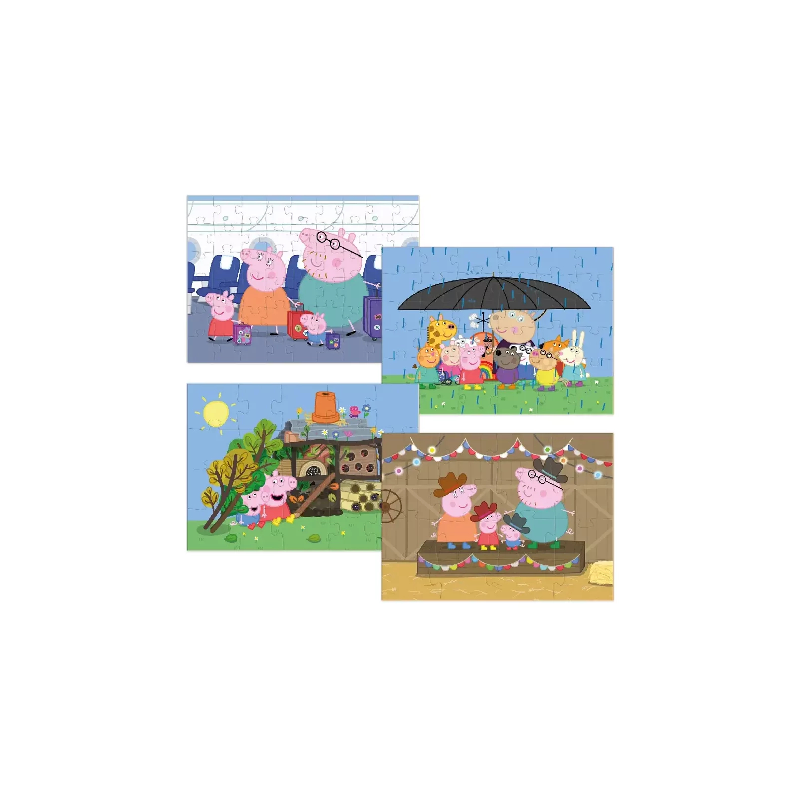Свинка Пеппа - весела порося з великою родиною. Вона любить грати зі своїми друзями та родиною, а також їй подобається вирушати на пошуки пригод. Дитячі пазли «Свинка Пеппа» — це ідеальний спосіб провести час із дитиною, вивчаючи світ Пеппи. Кожен пазл містить історію з життя Пеппи та її пригоди з рідними. Що може бути краще ніж один пазл? Чотири пазли в одній коробці, звичайно! Розроблені спеціально, щоб ставати складнішими з часом, у наборі три пазли: на 16, 20, 36 та 54 елементи. І всі вони зображують улюблених персонажів Peppa Pig.